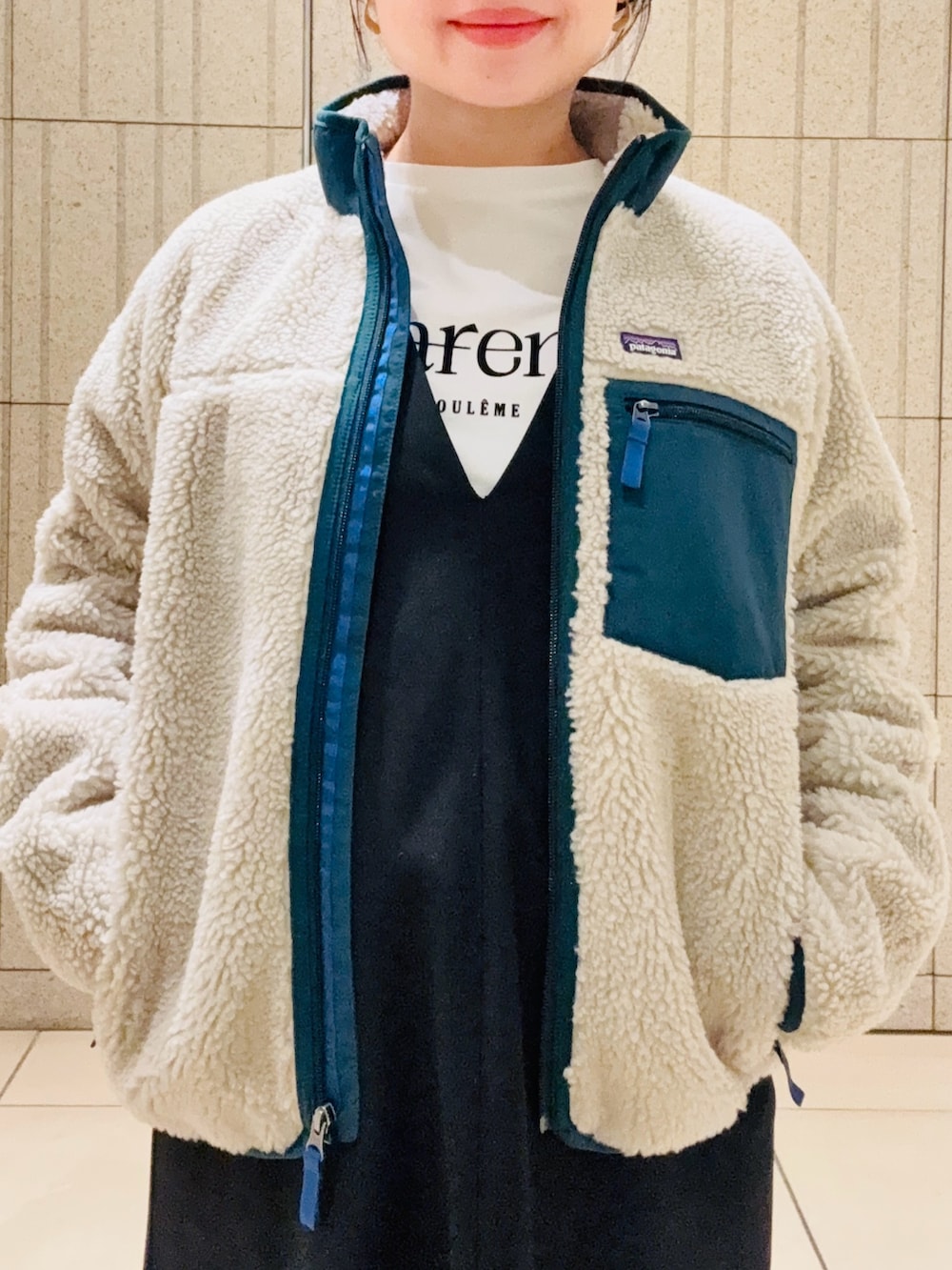 今すぐ着れるおすすめアウターです。着丈もコンパクトですっきり着れて、裏地付きなので防寒対策もバッチリです。グリーンの配色が可愛いです。