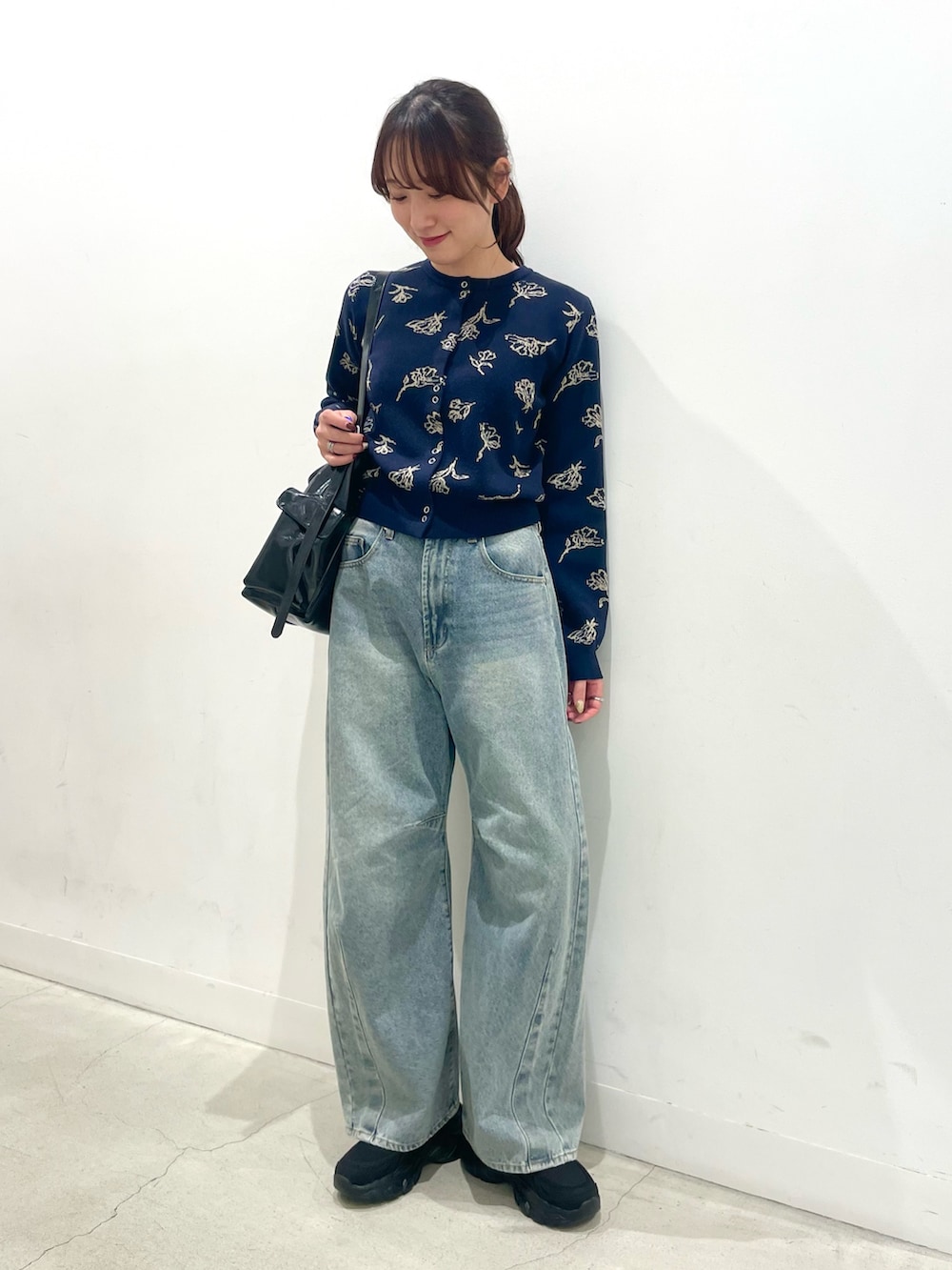 SENSE OF PLACE『洗濯可』ジャガードフラワーコンパクトニットカーディガン- 着用カラー: