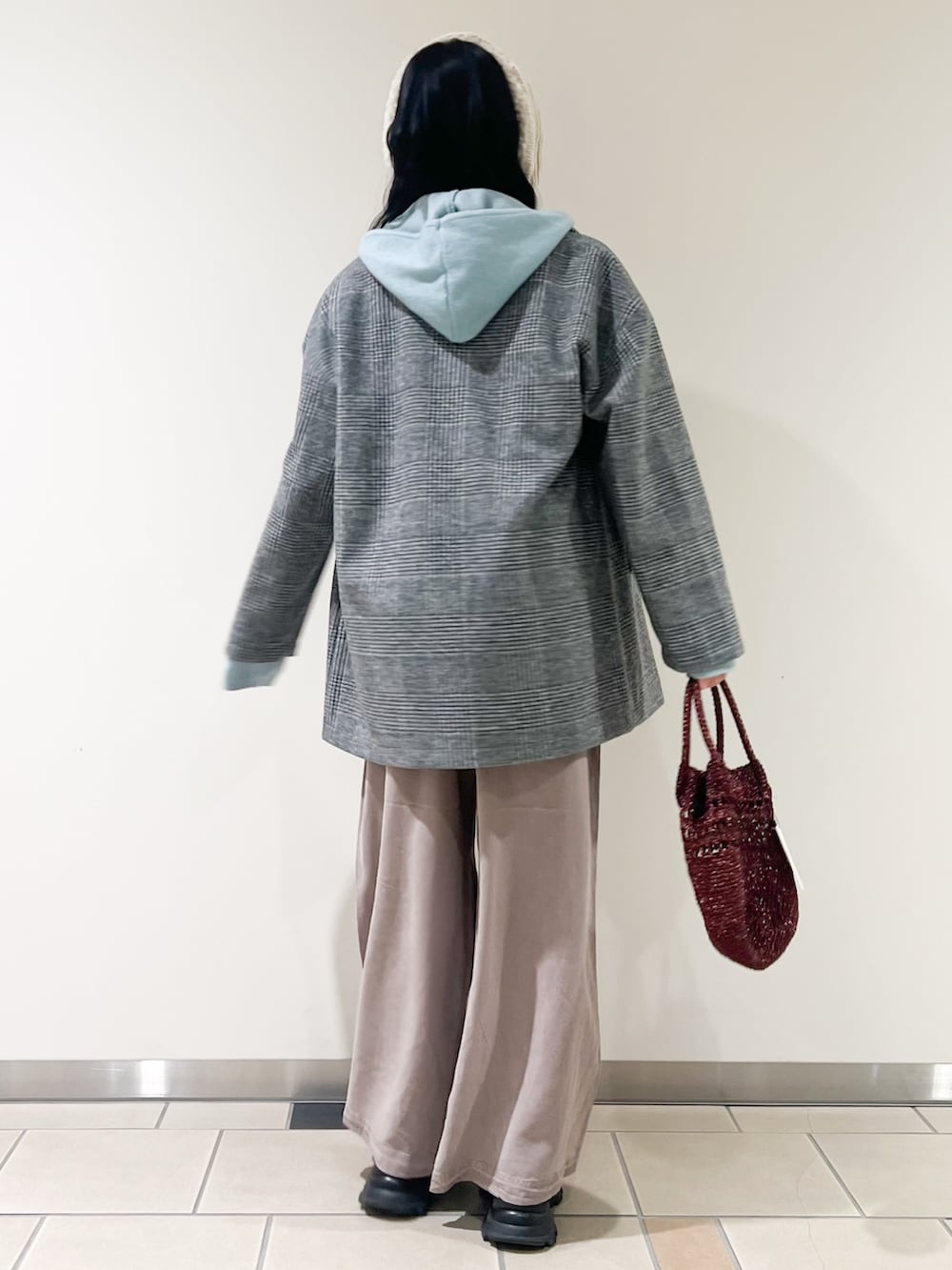 フード付きのニット×ジャケット合わせがとても可愛かったのでおすすめです💭🩵