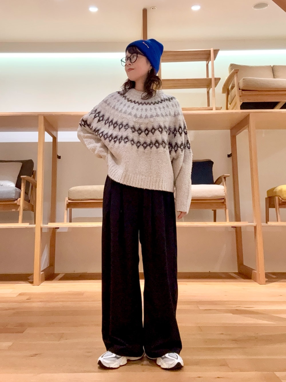 URBAN RESEARCHのウール混タックギャザーストレートパンツと合わせてシンプルですが、小物でシャレ感は十分出せるかと思います◎