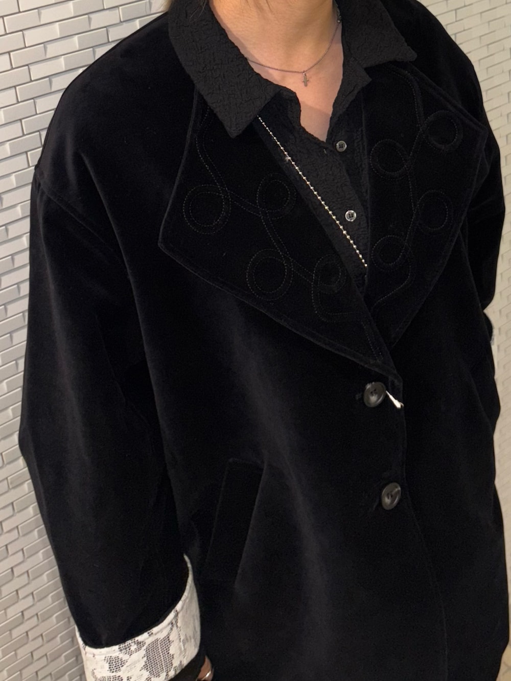 ベロア素材で高見えし、袖のレースがとても可愛いジャケットを着用しました💌