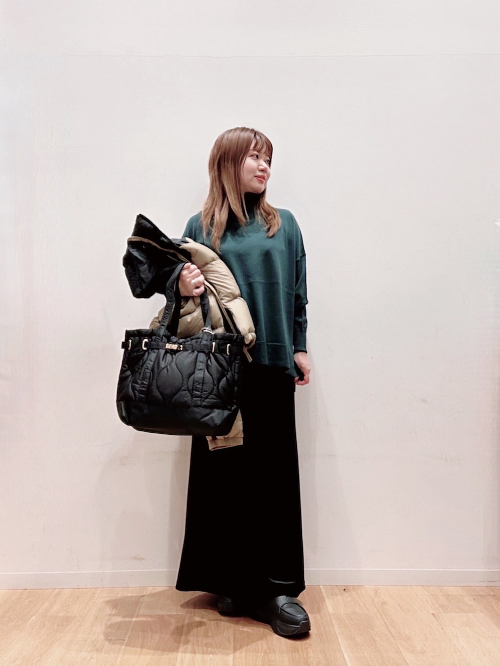 インナーには寒い時期に欠かせないタートルニット🧶チクチク感なく着やすい❣️