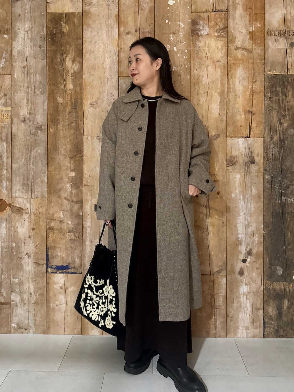 合わせたロングコートはロングなのに