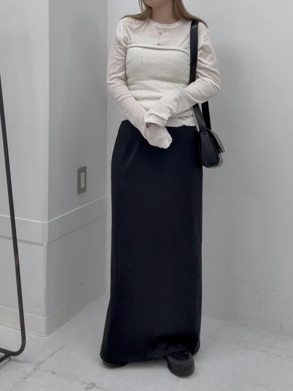スパンコールのキラキラが可愛いニットを中に仕込んで、クリスマスシーズンののお出かけにもおすすめのコーディネートにしました🎄