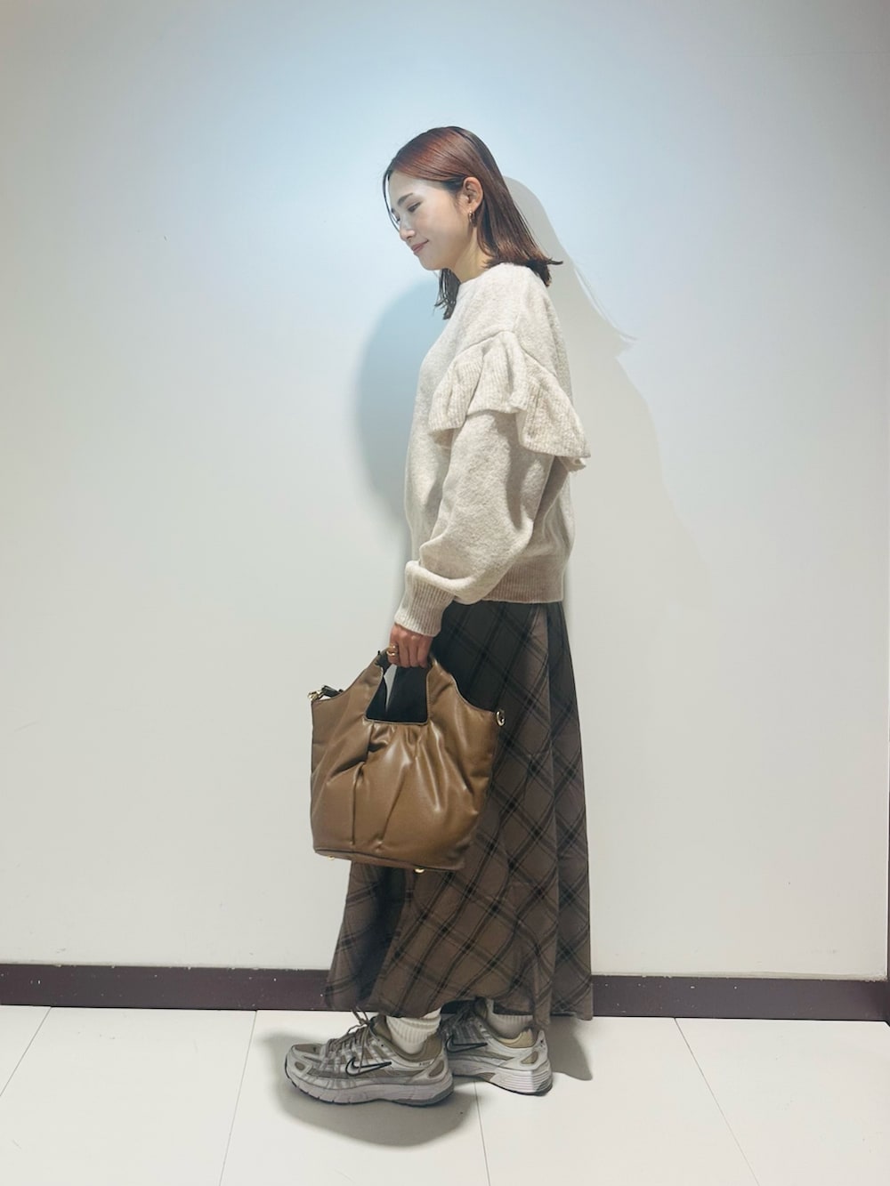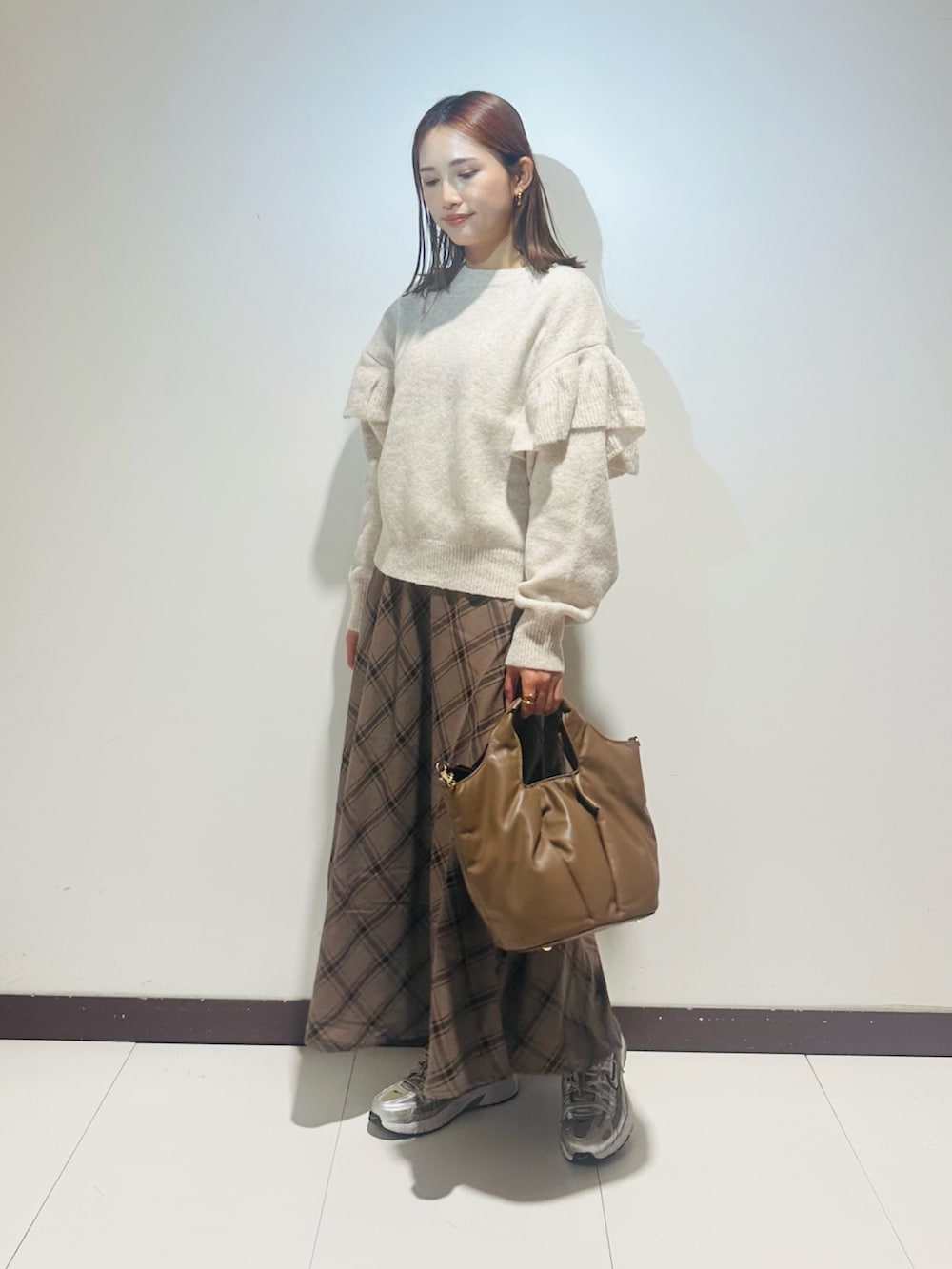 ニットはシンプルですが、袖のフリルがポイントになって可愛いです🩷
