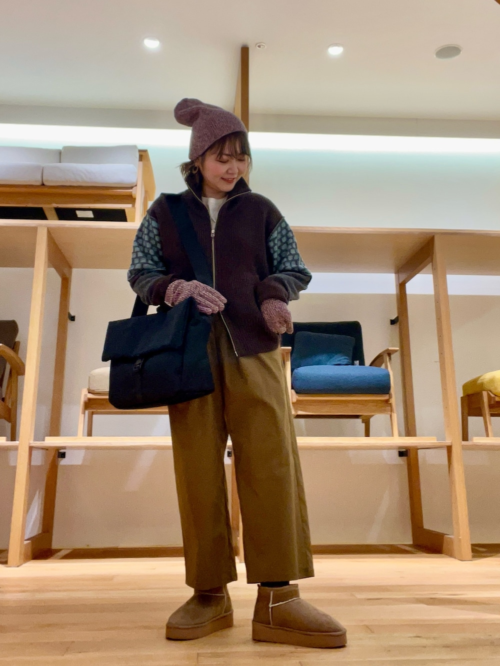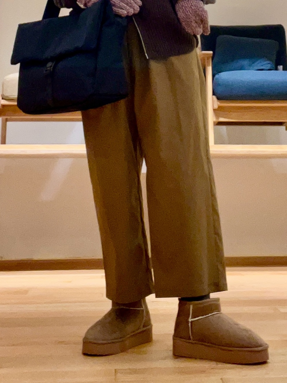 足元は、季節感が出るフェイクムートンのアイテムを合わせました‼︎カジュアルの中にリラックスしたスタイリングがオススメです◉