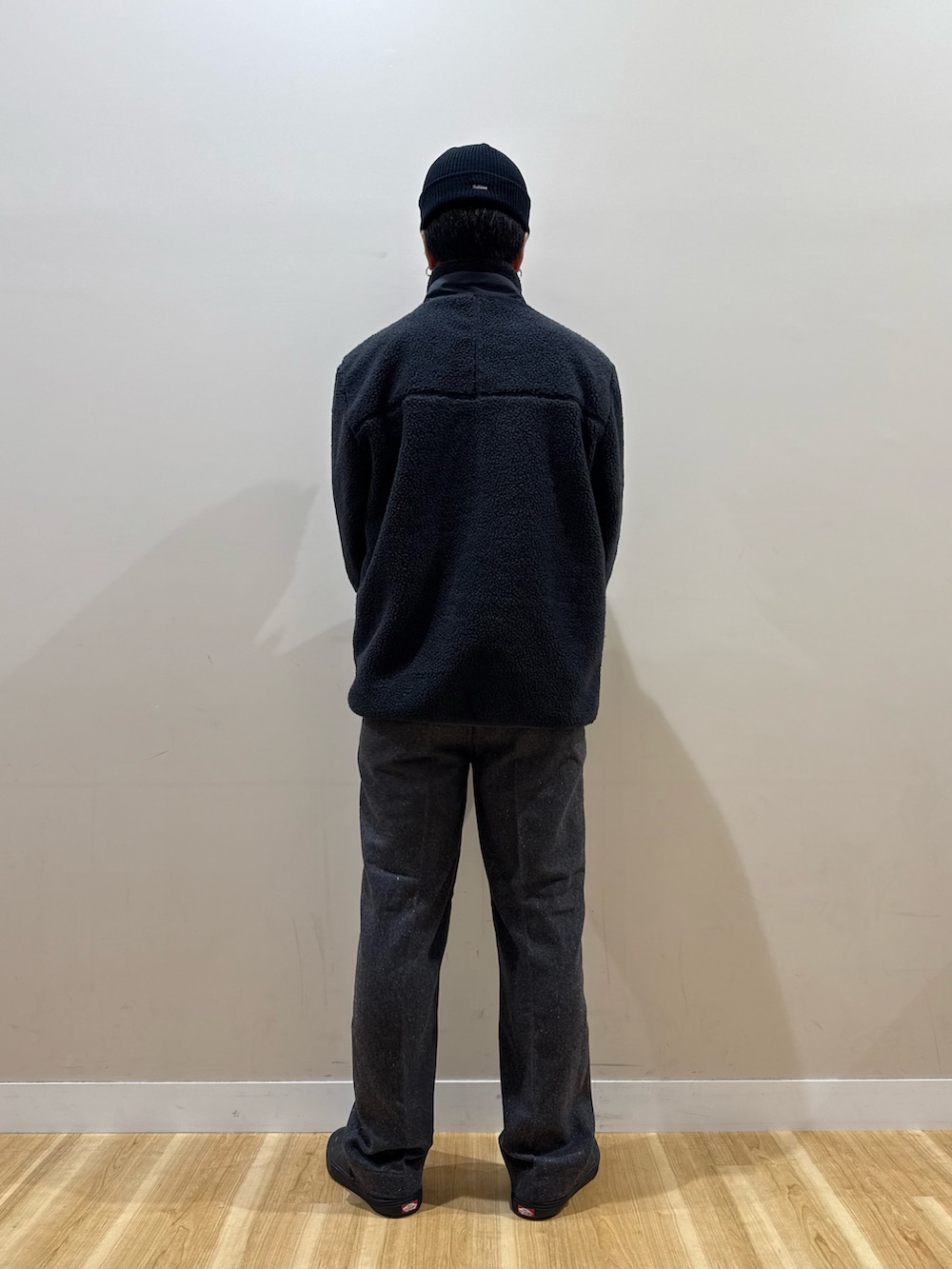 見た目通りさすがの暖かさで、今回のようにセーター1枚にボアジャケットだけでかなり暖かいです。
