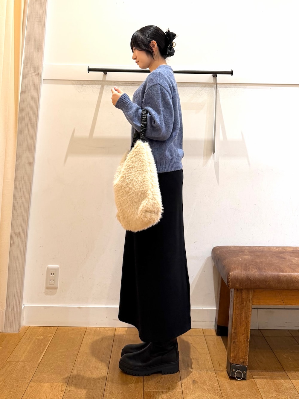ファーハンドルバッグ