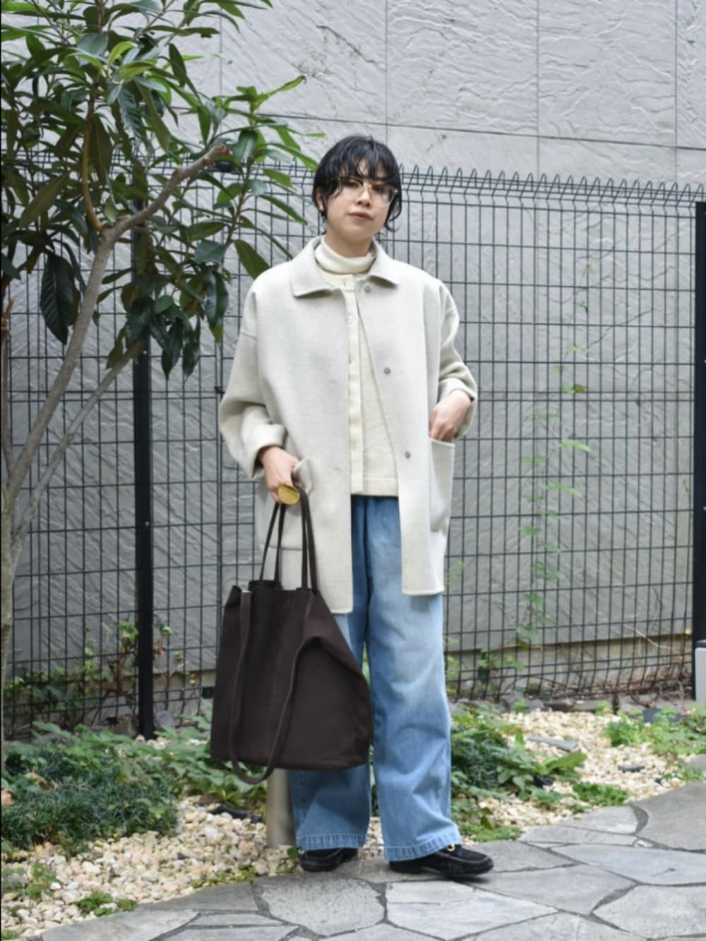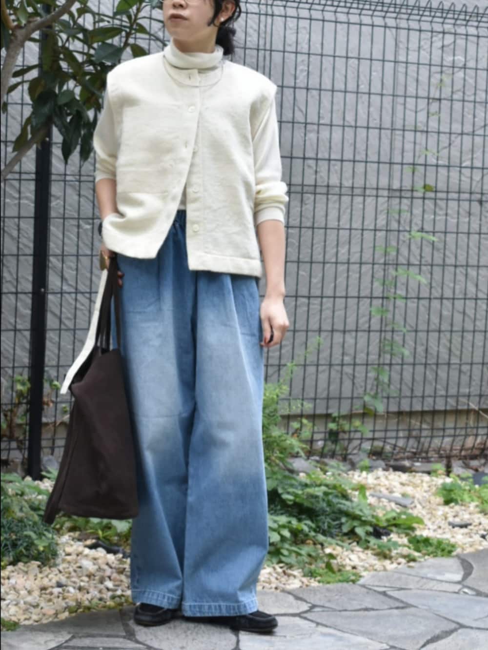 かぐれの定番、フェードデニムイージーパンツで大人カジュアルなスタイリングを組んでみました。