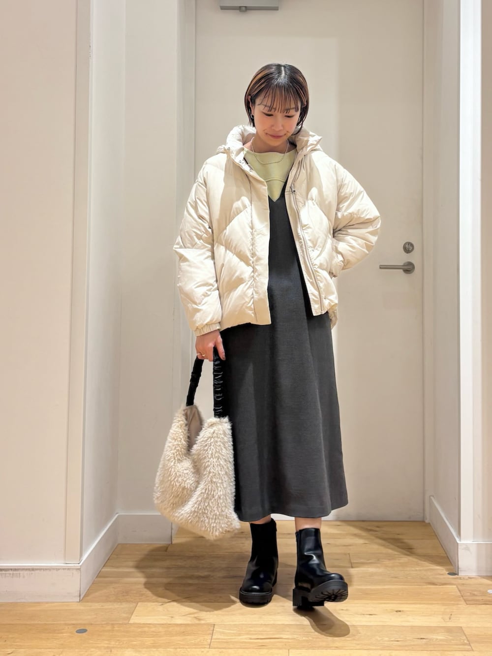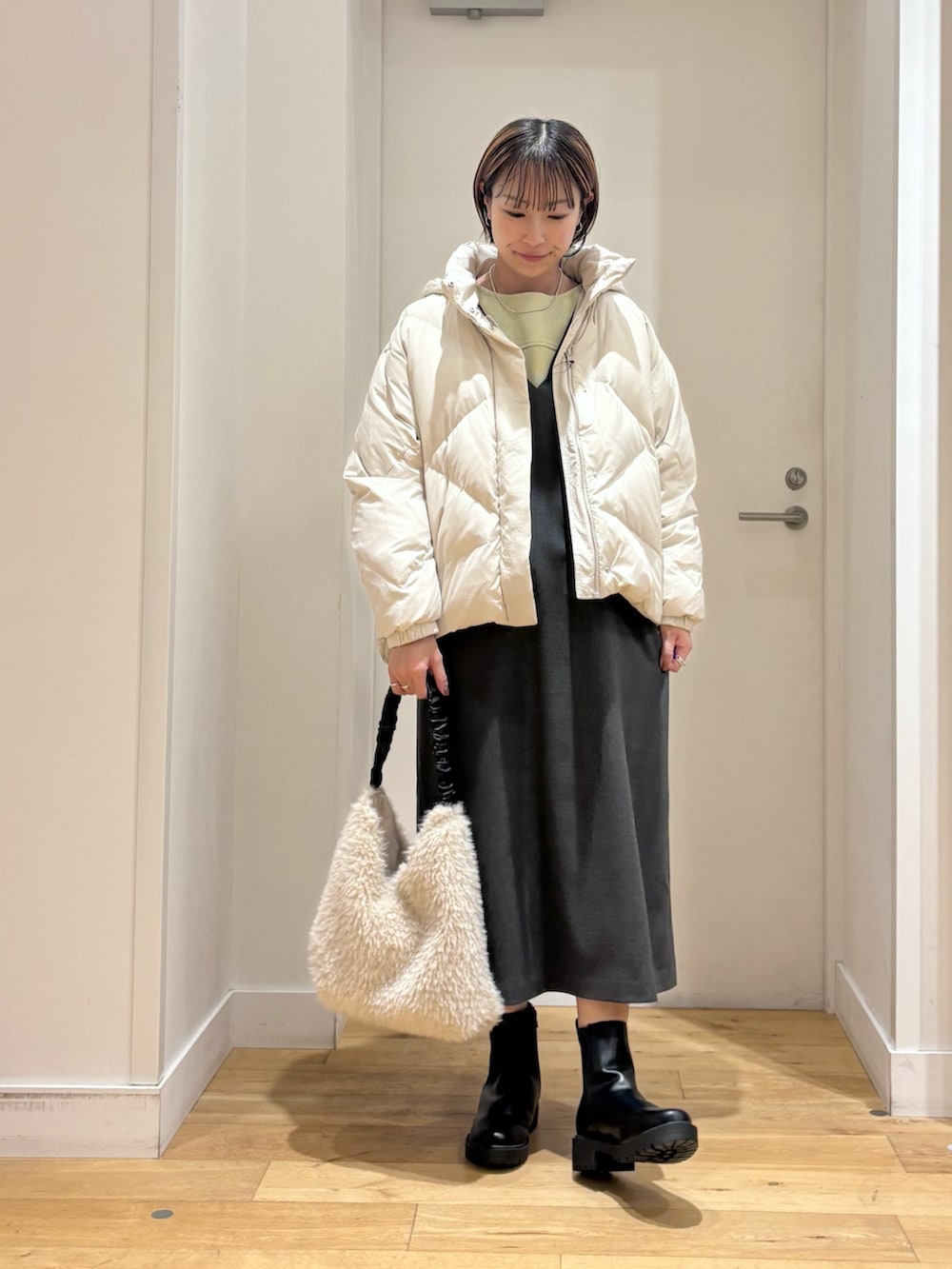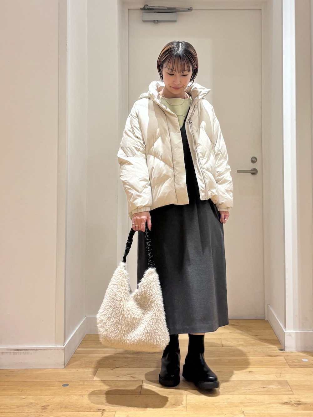 フードを外してスッキリ見せたり、雰囲気を変えてコーディネートを楽しめます◎