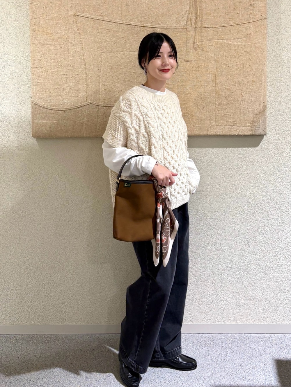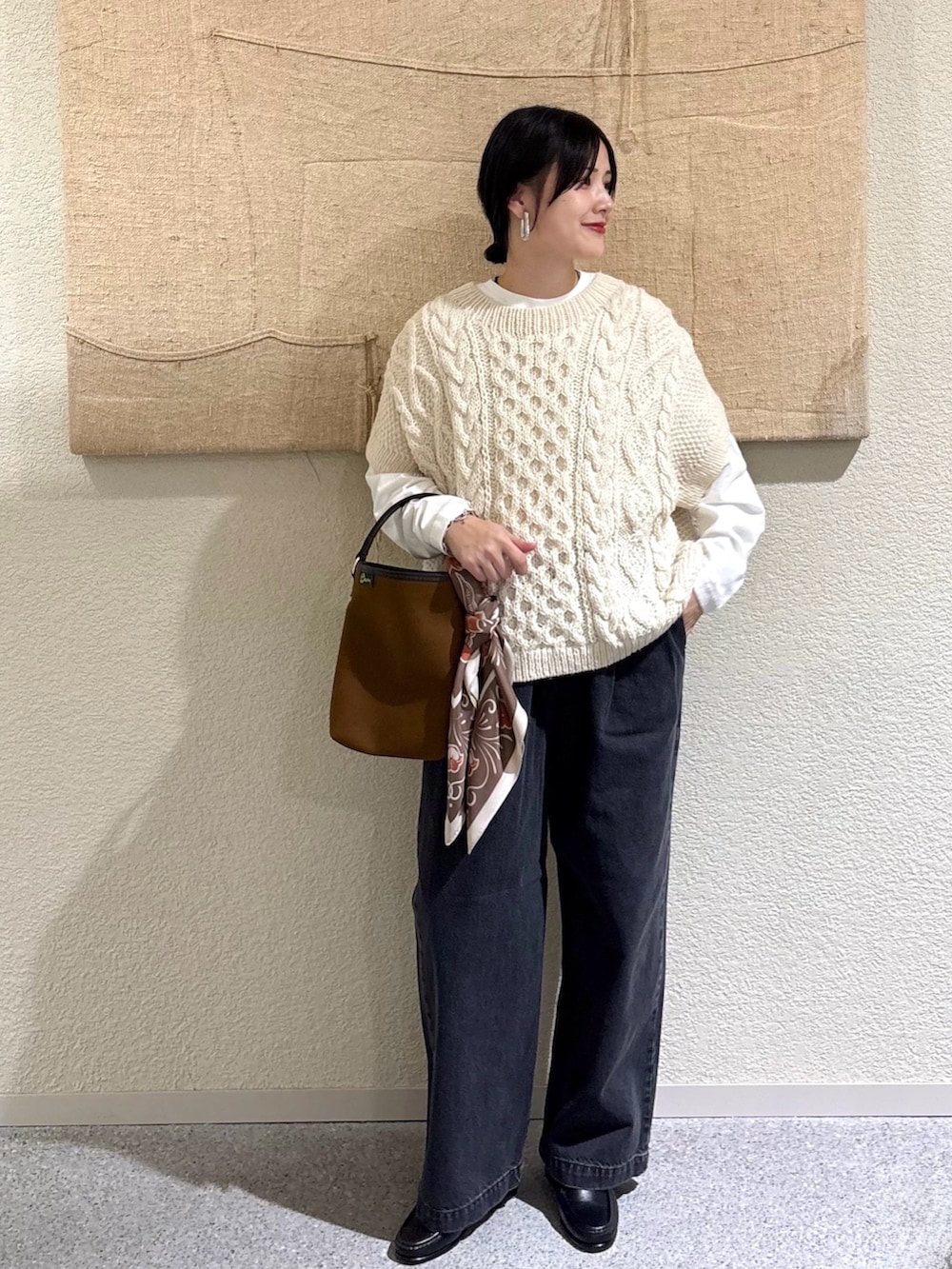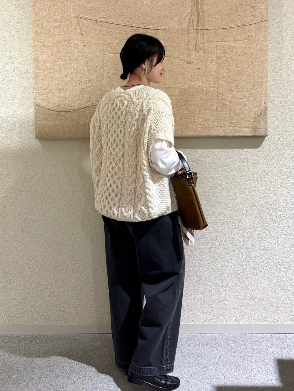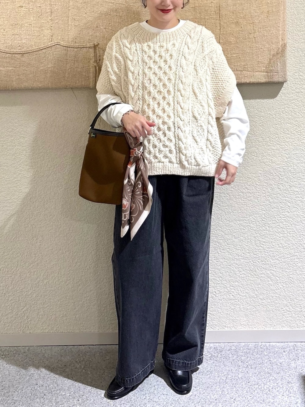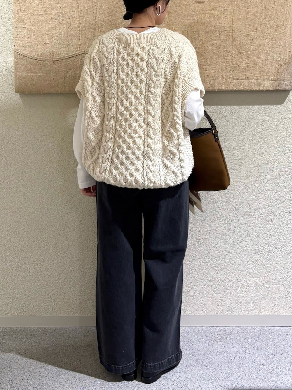 ・アラン編みベストの立体感が、シンプルなカットソーに奥行きをプラス