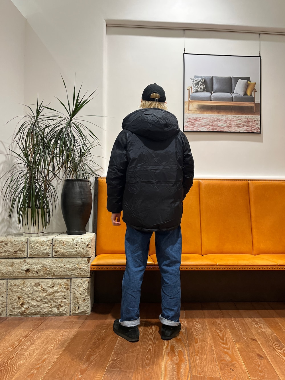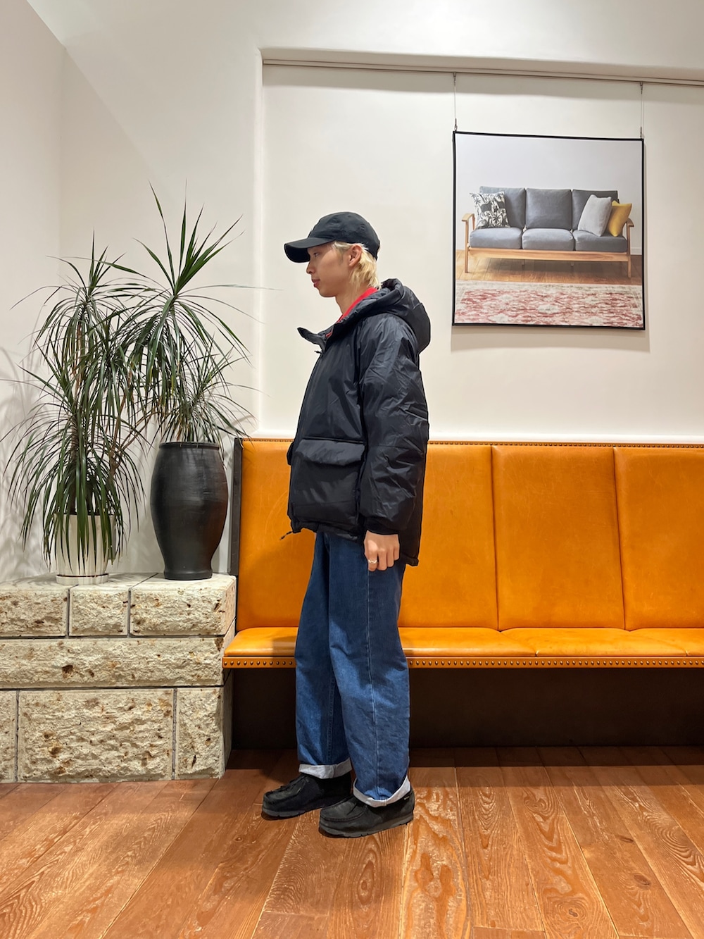 アウターは黒でシンプルにして、中の赤色を目立たせるようにしています!