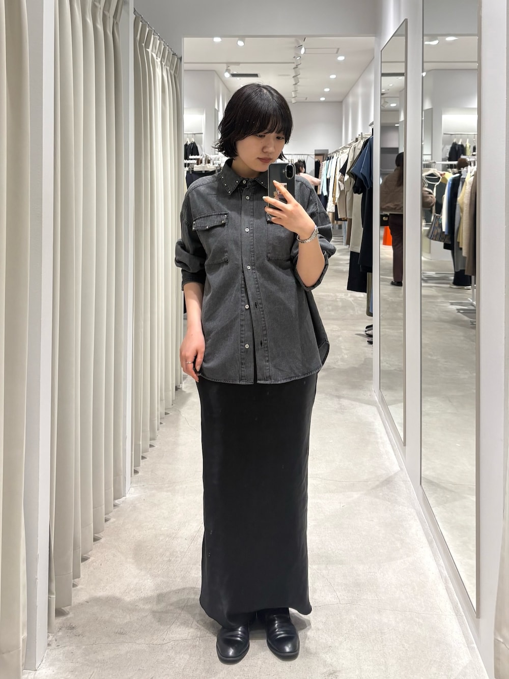 SENSE OF PLACEスクエアトウセンターシームストレッチブーツ- 着用カラー: