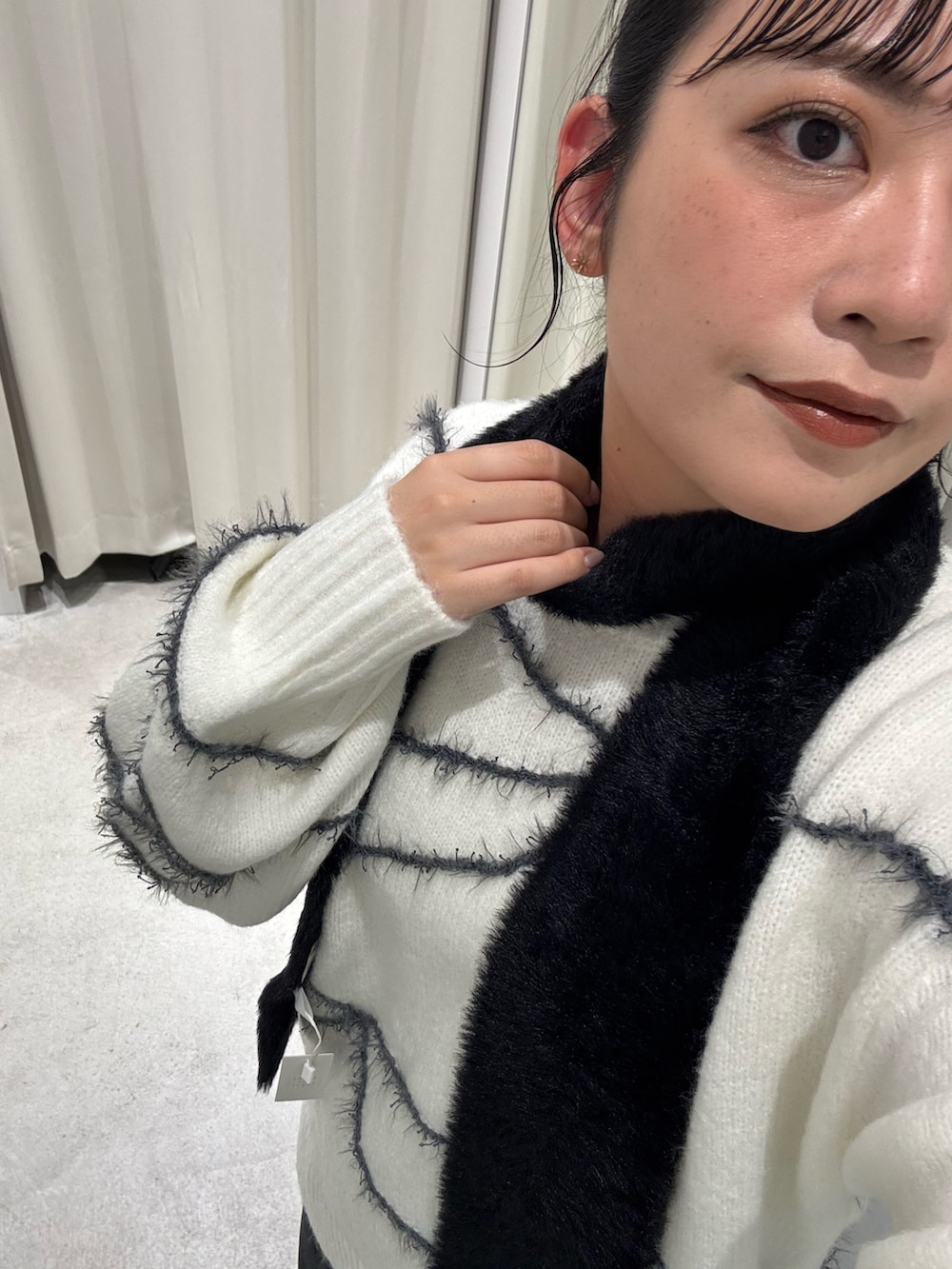 シャギーに合わせて、ストールも同素材で合わせて統一感を持たせました!