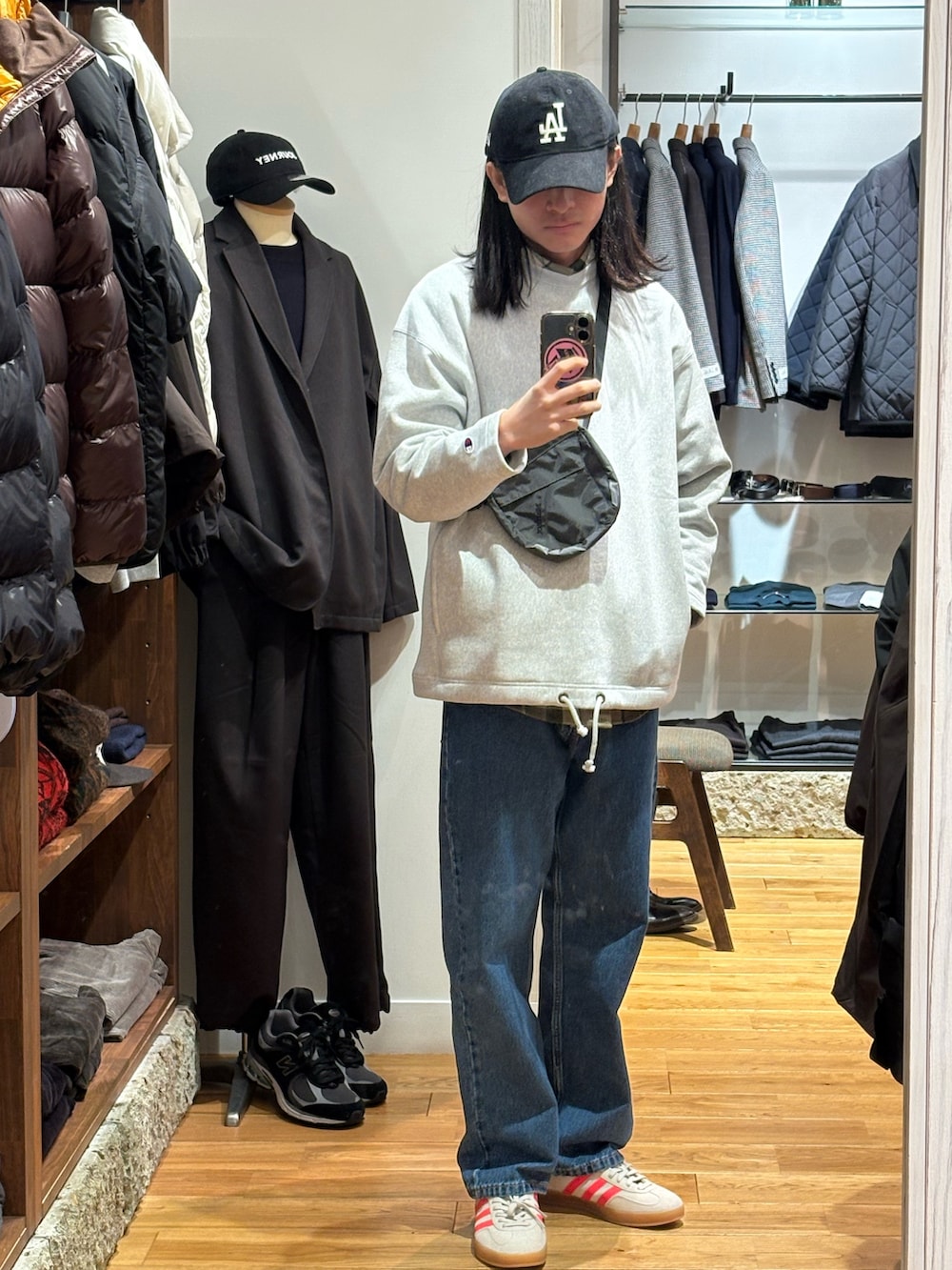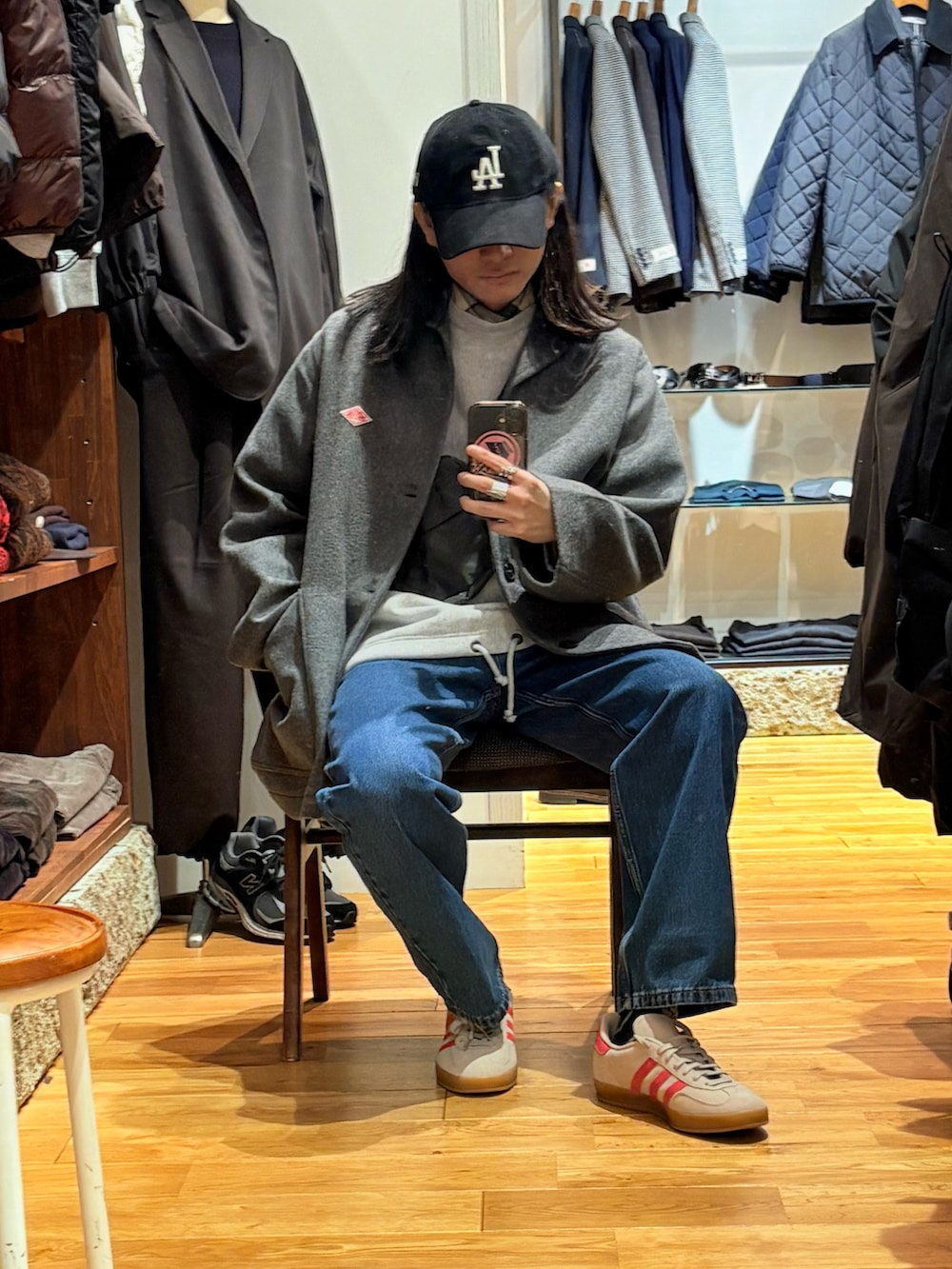 DANTONのウールナイロンのコートをメインにちょっと若めのコーデを組んでみました。