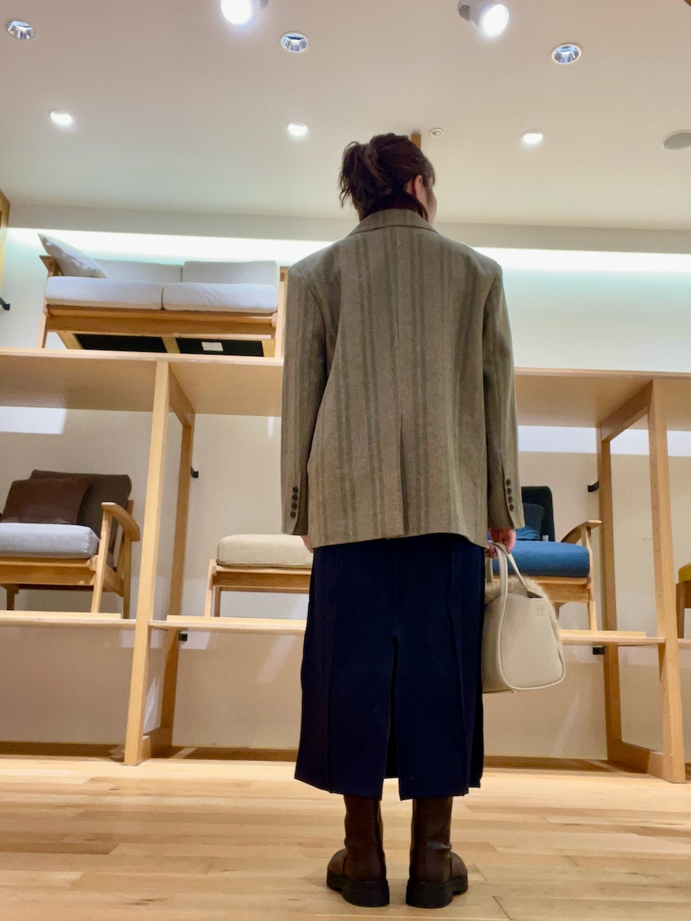 ジャケットはウールが入りオーバーなシルエットなので中物にニットをいれたりと長く着用が頂けます‼︎