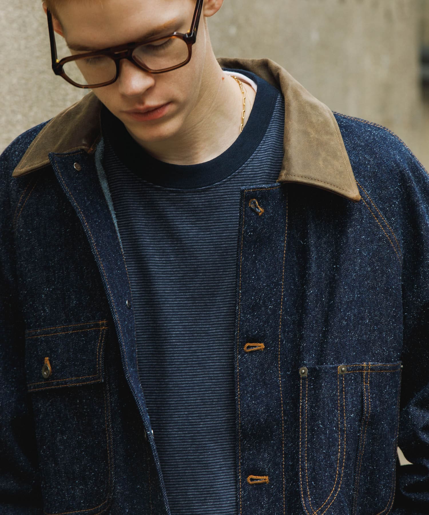 自分は814の中でも1番大振りなマフラーをチョイス。首に巻いてもよし、肩にたらしておくだけでもよし。お客様の好きなように暖かくファッションができるアイテムになっております。
