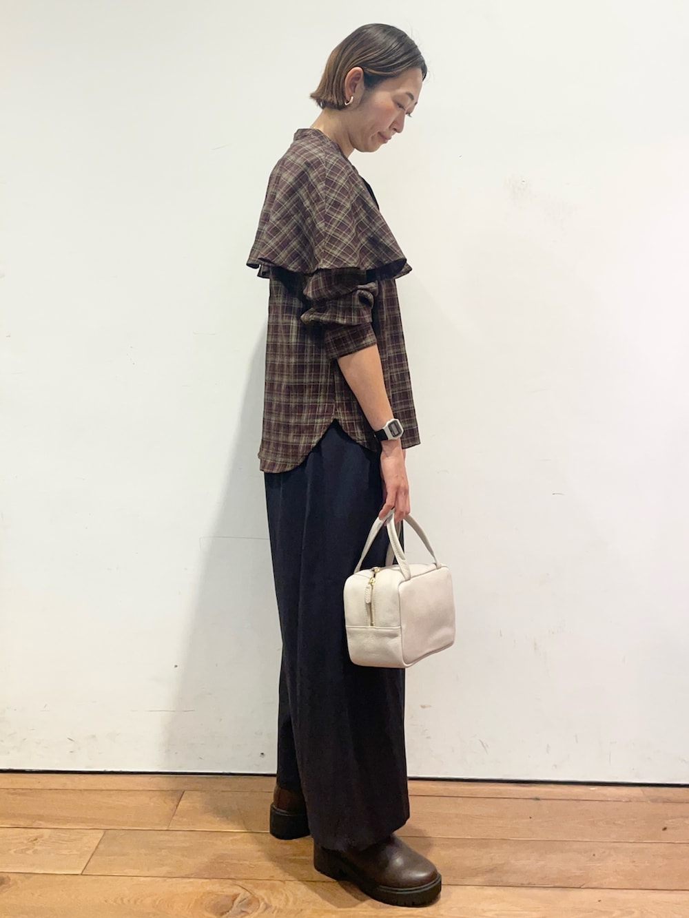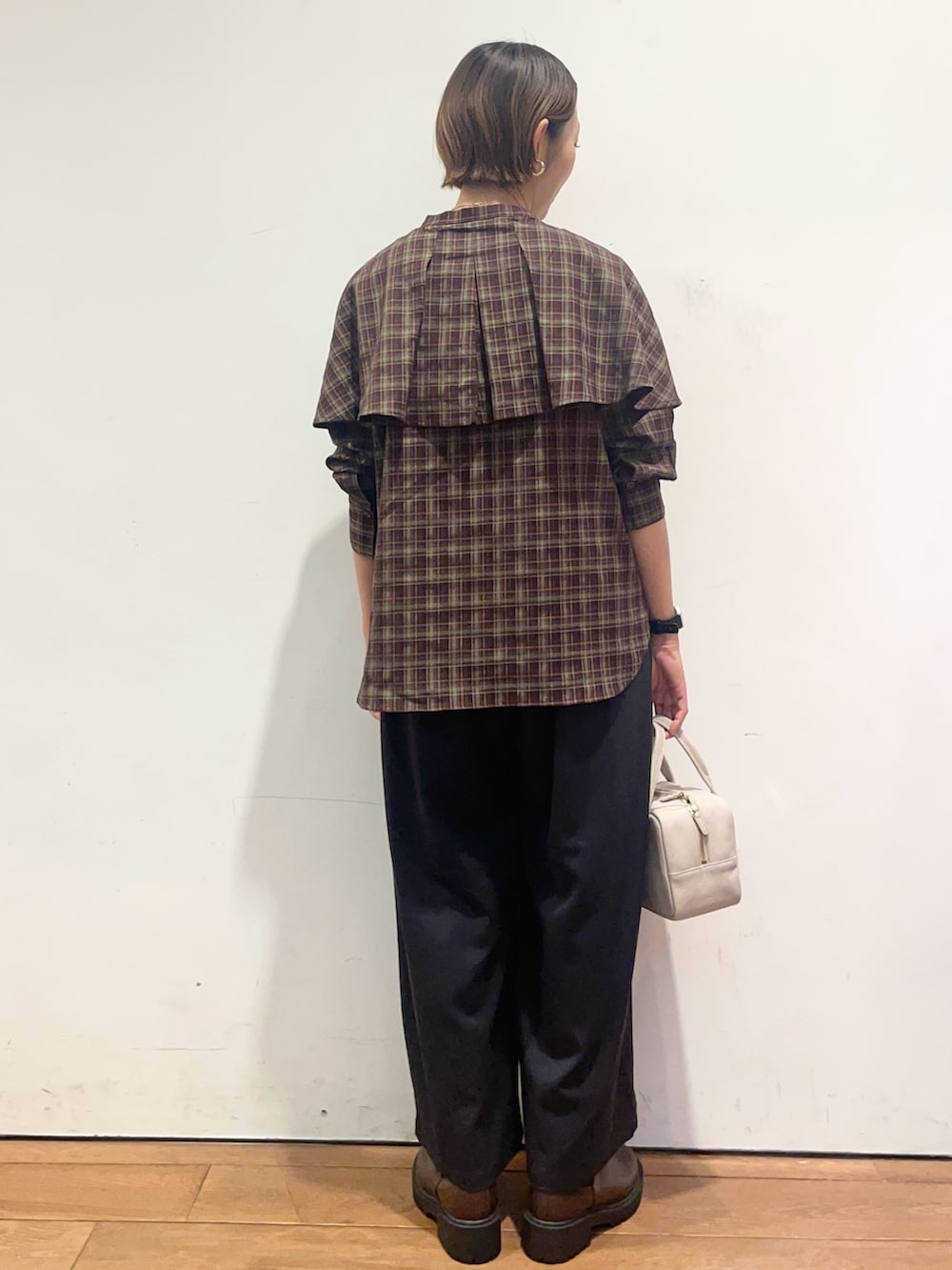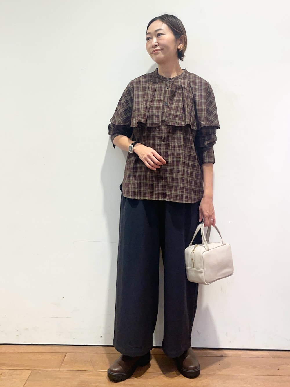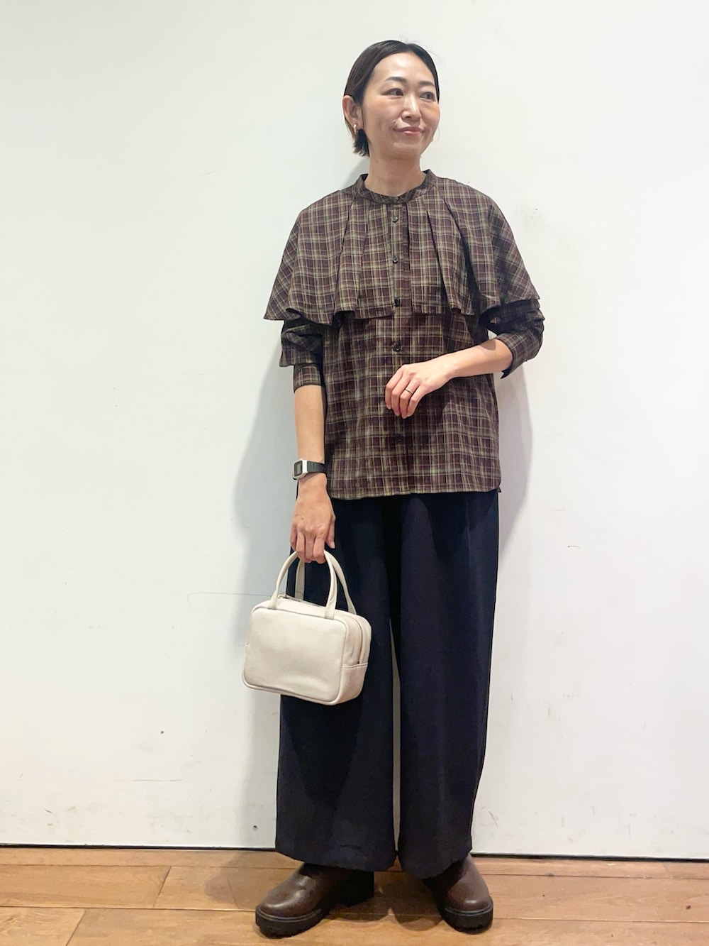 チェックのブラウスはフリルカラーが可愛いです✨