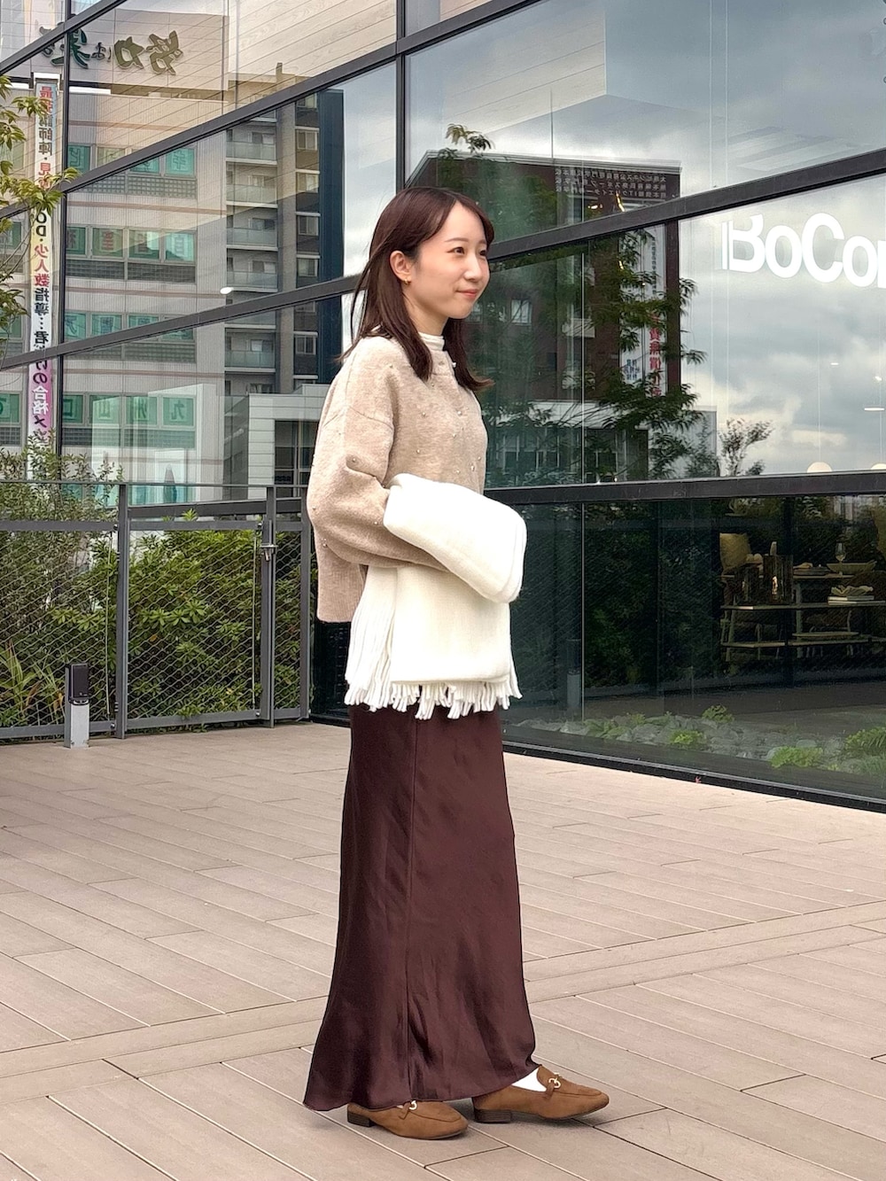 サテンスカートで合わせてキレイめな大人かわいいコーデに仕上げてみました!