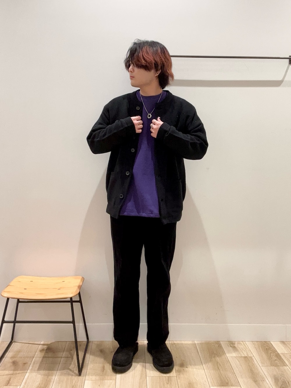 インナーのWIDE Dadのプルオーバーの色を映えさせるために他のアイテムは黒で統一!