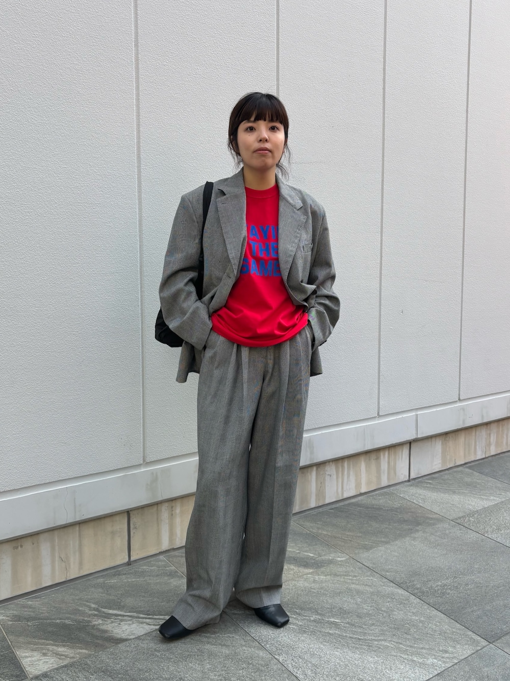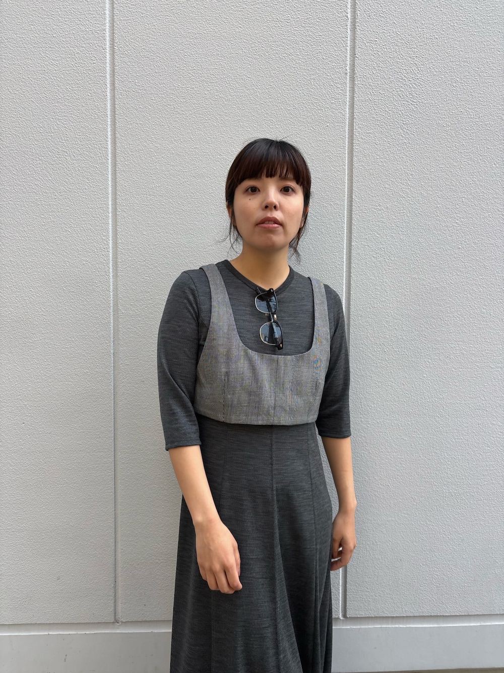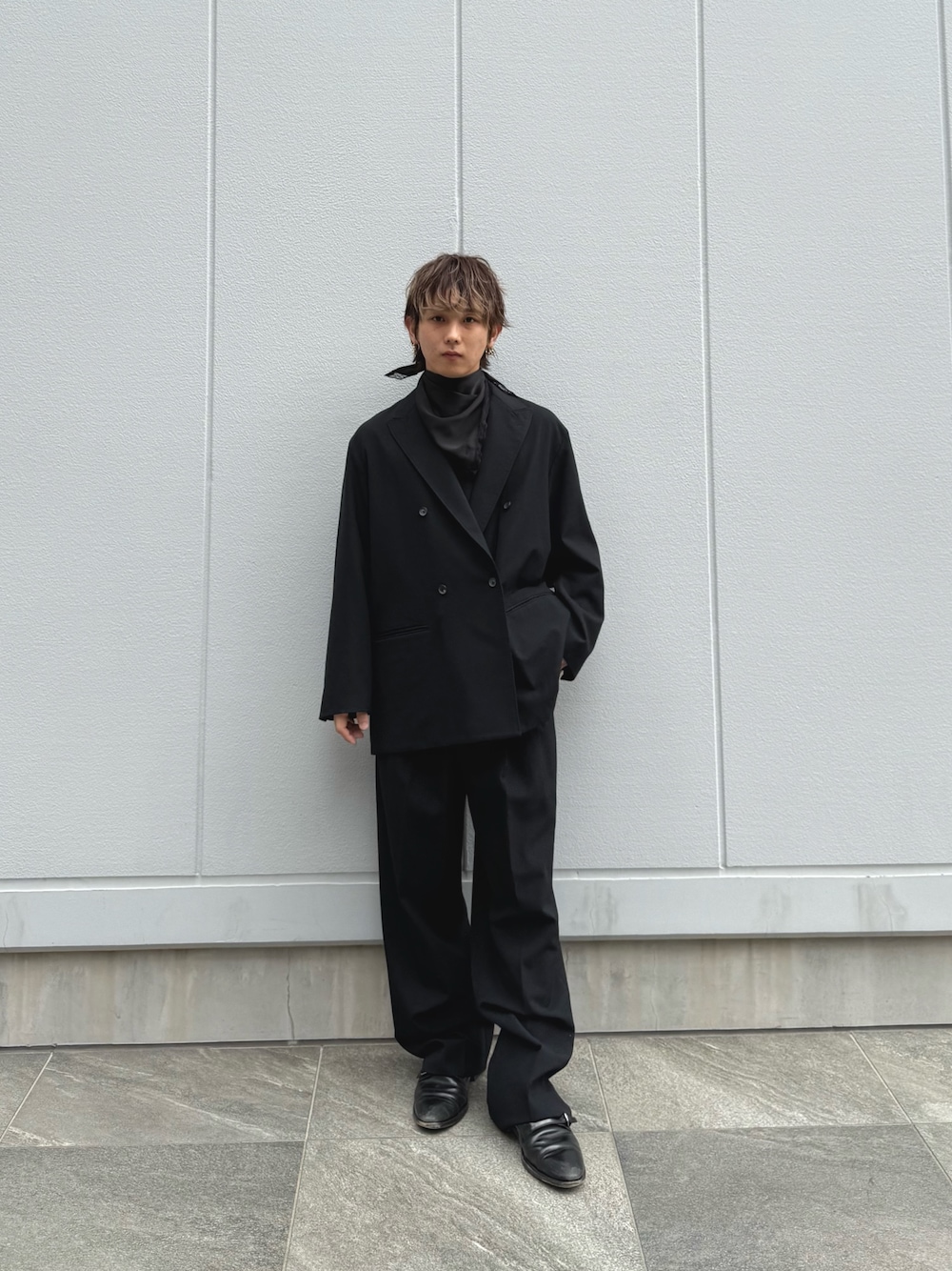 こちらのコートは比較的ゆったりとしたサイズ感の為、厚地のニットをインナーに着ても窮屈感なく使っていただけます◎
