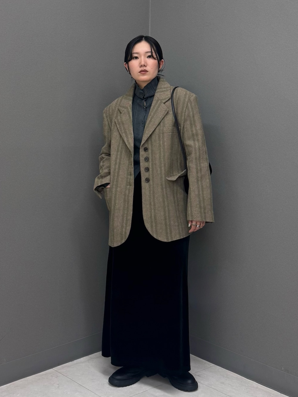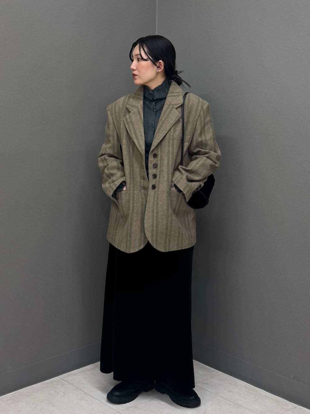 身幅もしっかりあるので中にニットも着ていただけます◎