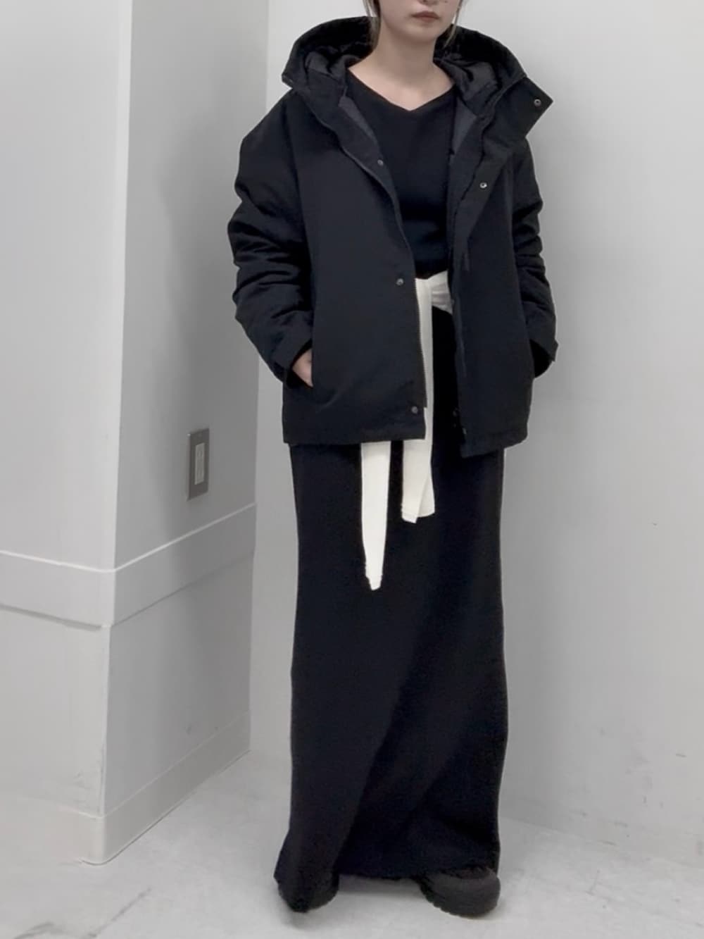 フード付きでカジュアルなデザインなので、スカートやワンピースなどと合わせていただくとレディライクな印象に🙂↕️