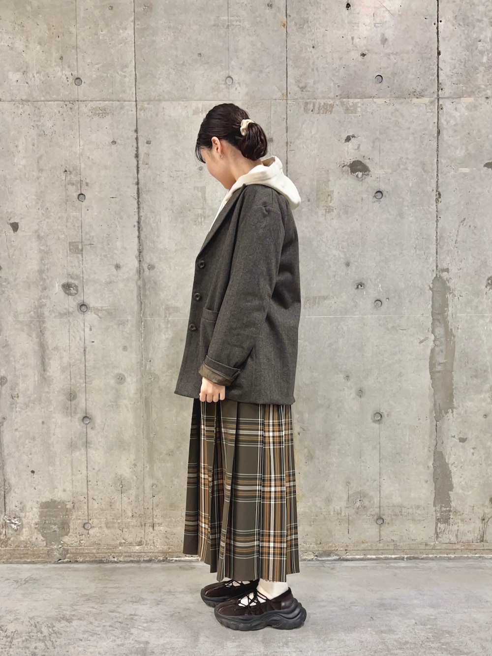 甘めになり過ぎてしまわずに、トップスを短丈のフーディセーターとテーラードジャケットを合わせ、上下で雰囲気を変えてみました!