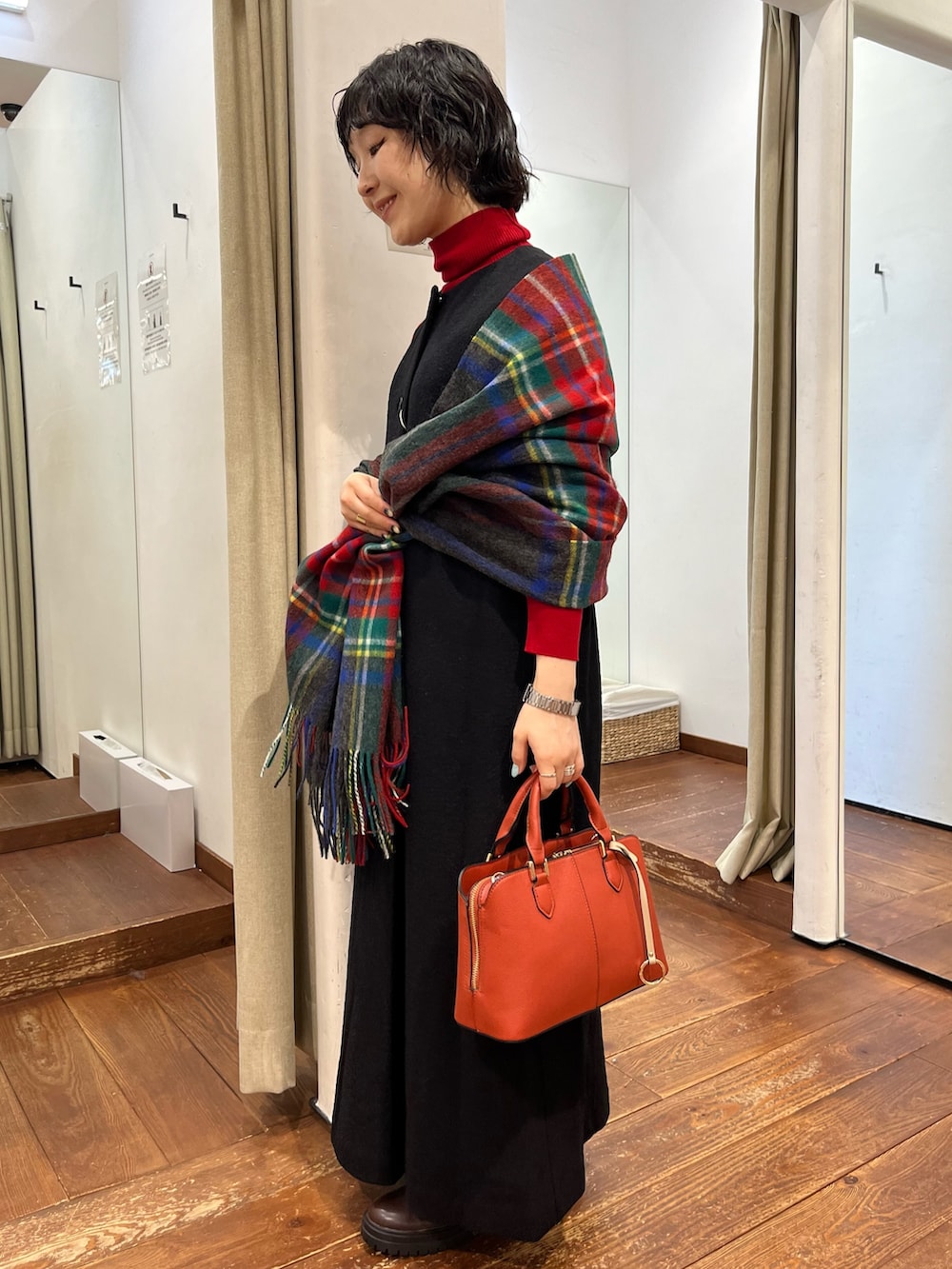 マットなブラックがコーデに締まりを与えてくれます。ウールの暖かみがありかっこよくもありオトナの女性らしさもあります。。🖤