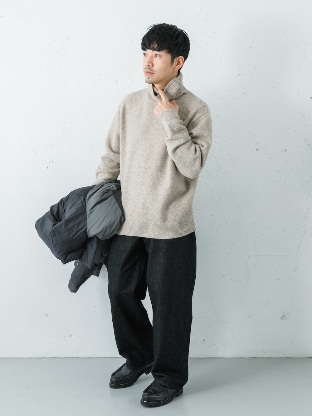 タートルニットは肉厚ですがもちもちで柔らかくストレスないのでダウンの下でも暖かくストレスフリーです◎