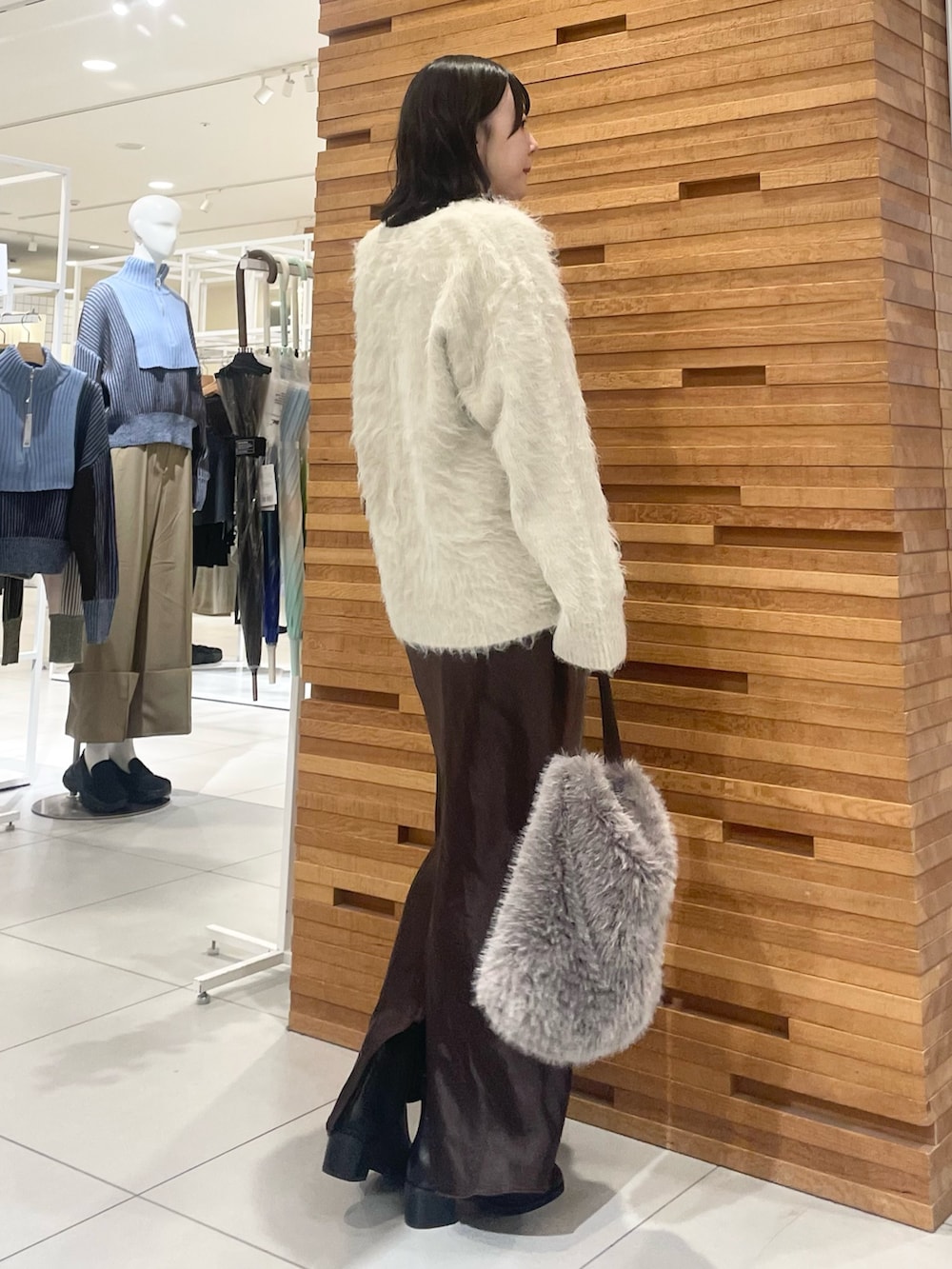 上品な毛足のある素材で、秋冬らしい温かみを演出・Vネックデザインで、顔まわりをすっきりと見せる・同素材のニットタイ付きで、着こなしのアレンジが楽しめる万能アイテムてす❤️🔥