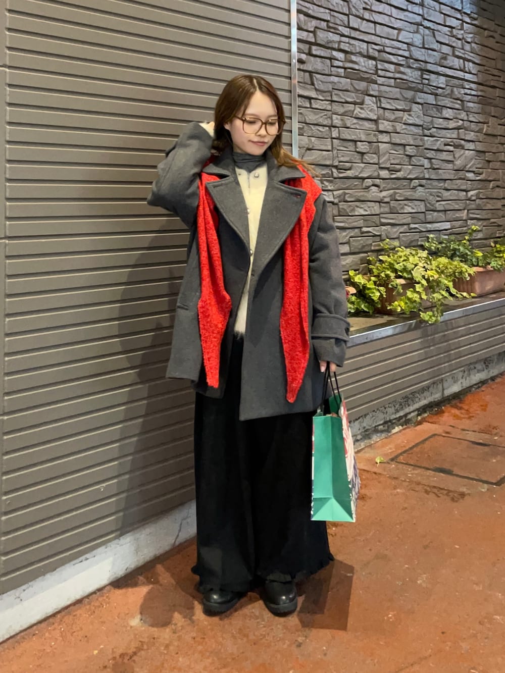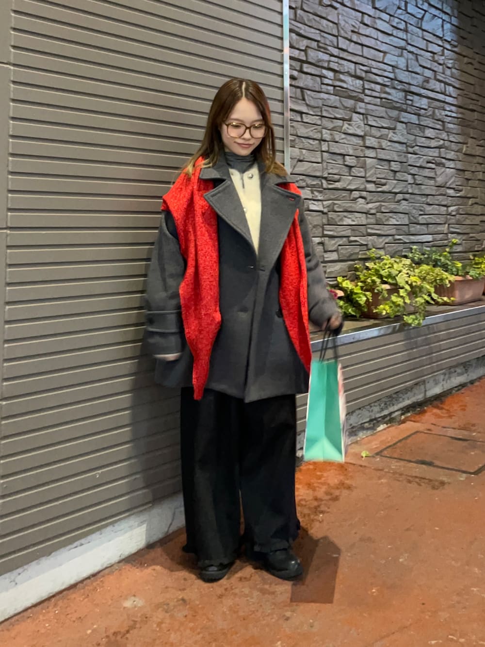 コートはウール100%のメルトンPコートです!見た目よりずっと軽く、裏地付きの暖かい羽織です✨丈感もちょうどよく低身長でも着れる着丈になります!パンツスタイルやスカートにも合い、色味はこちらのグレーが一押しです!
