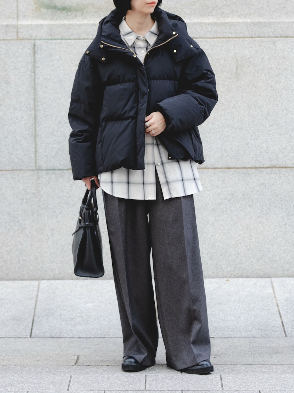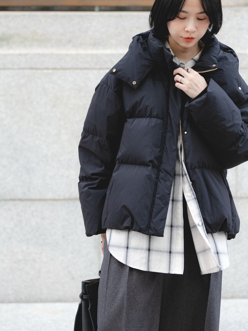 ファスナーや金具をゴールドにすることで、カジュアルすぎず上品な印象に。ダウンパックのボリュームを抑えたデザインと、光沢のない生地感が特徴です。スポーティーになりすぎず、ダウンが苦手な方にもおすすめです。