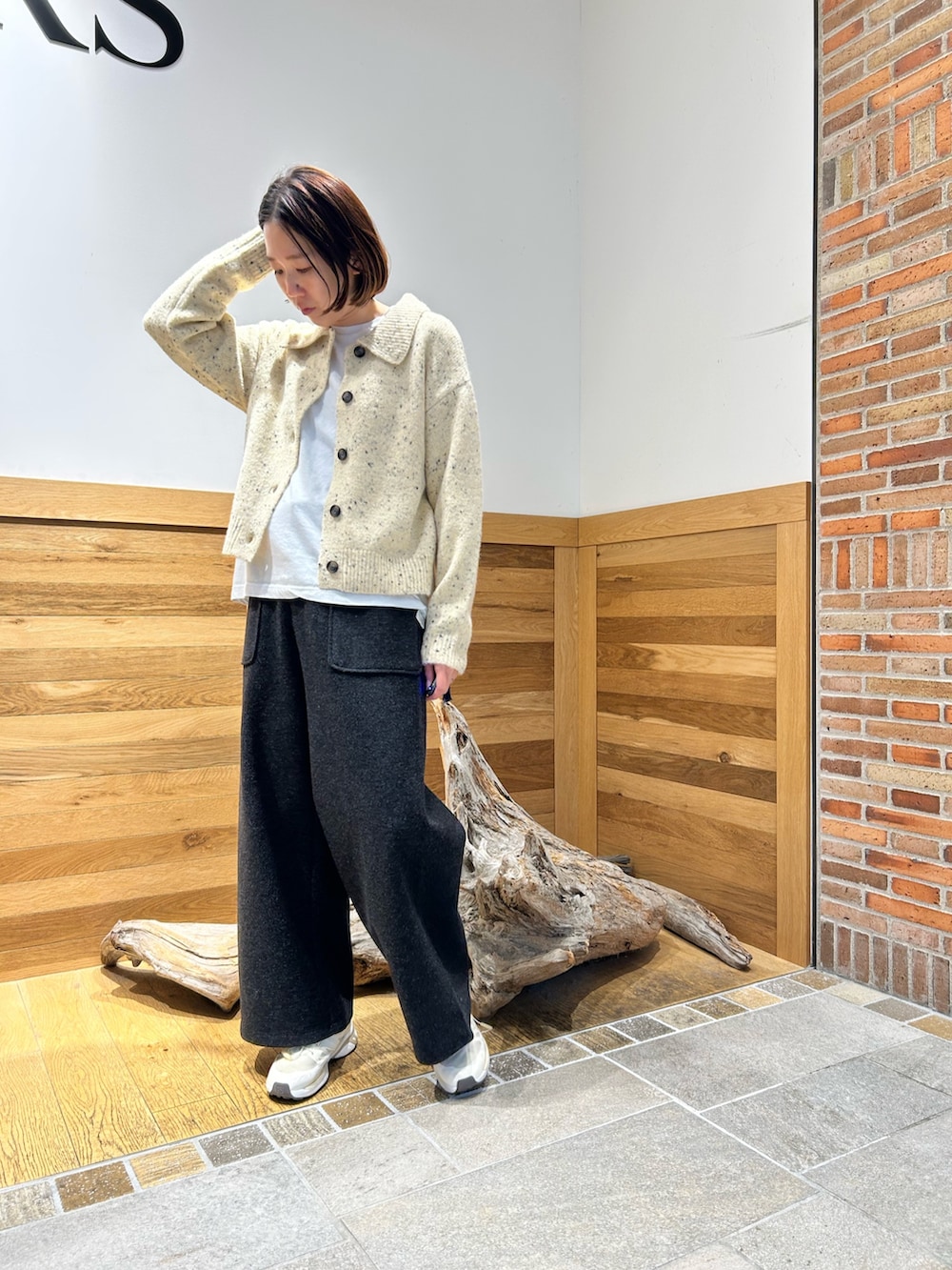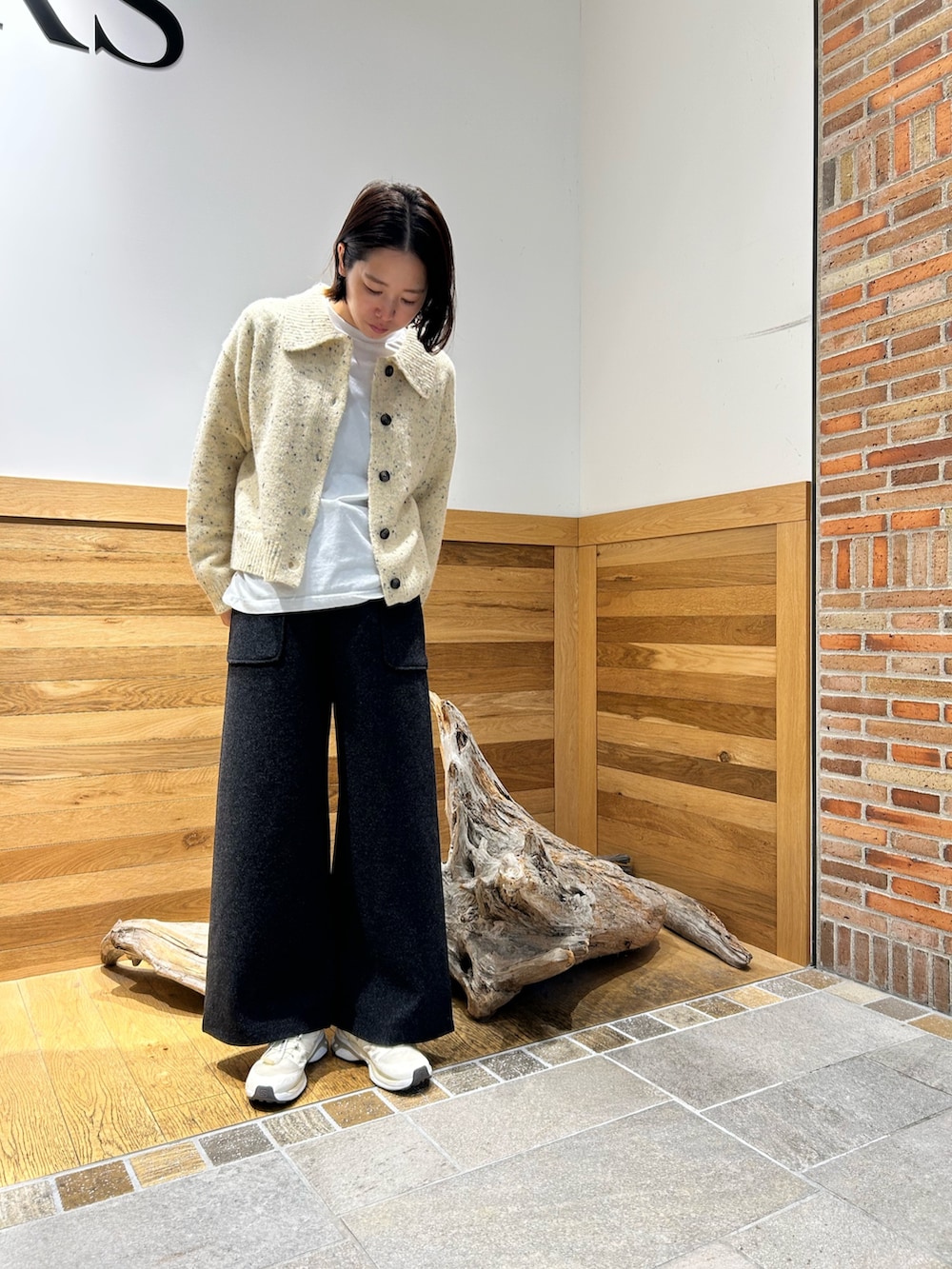 真冬も暖かく穿いていただけるメルトンのワイドパンツのご紹介です。腰回りはスッキリ、ストンとした綺麗なシルエットで、カジュアルにも、綺麗めにも、着回ししやすいです!