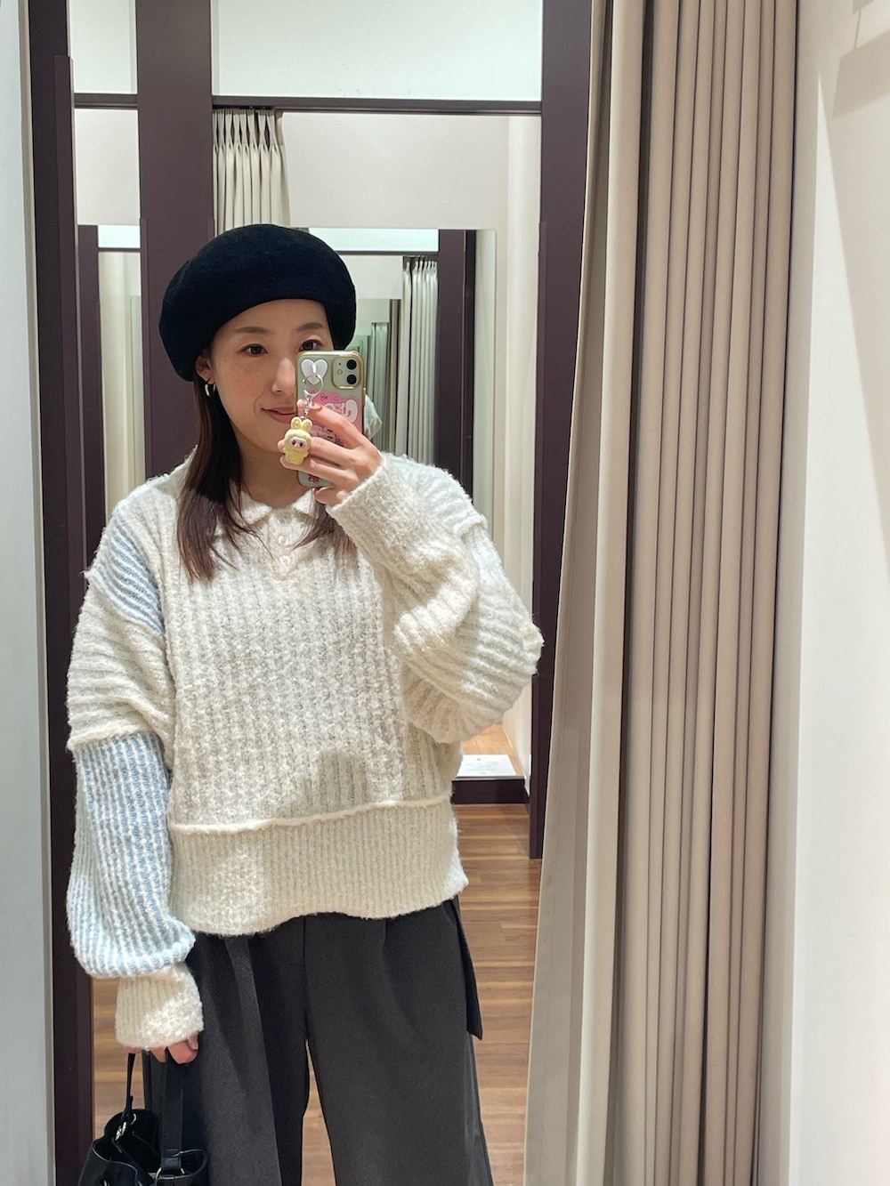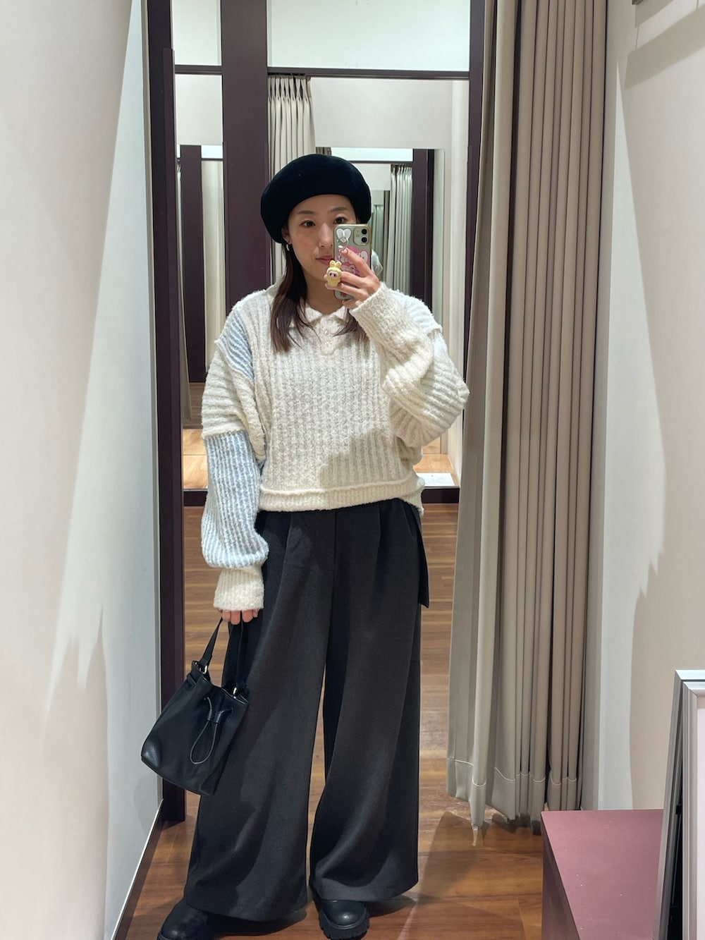 トップスは襟が付いているのでポイントになり可愛いです♡