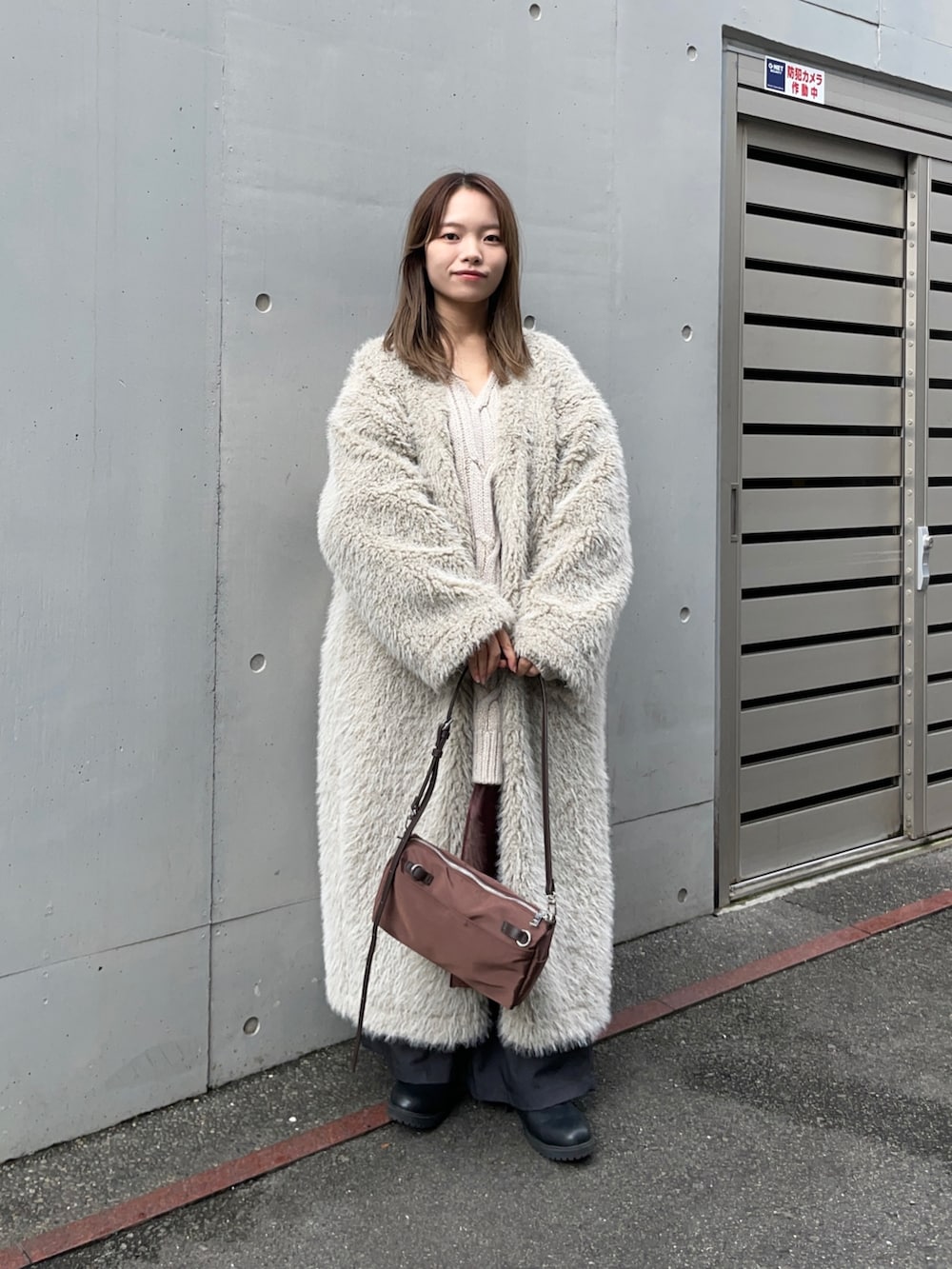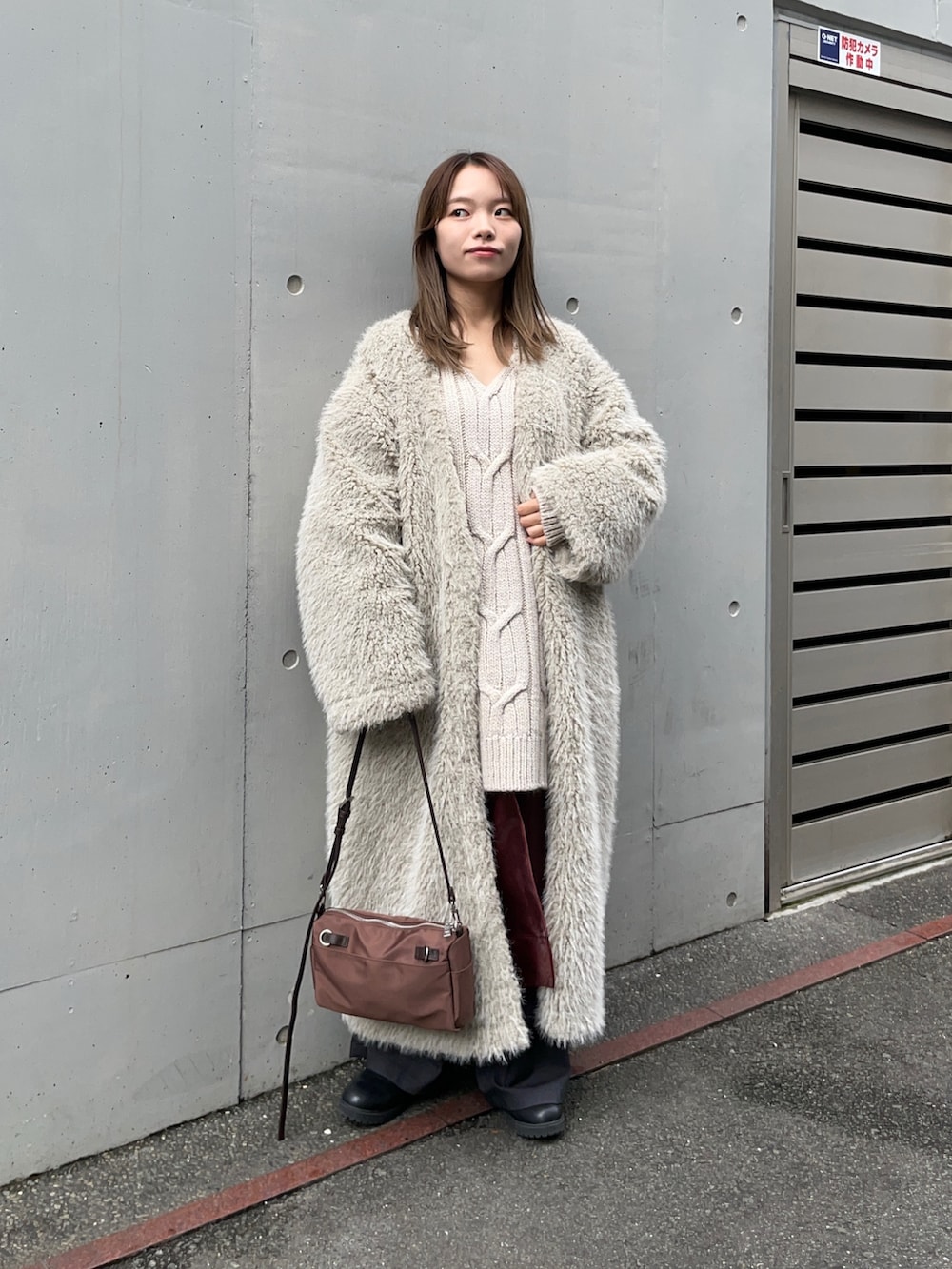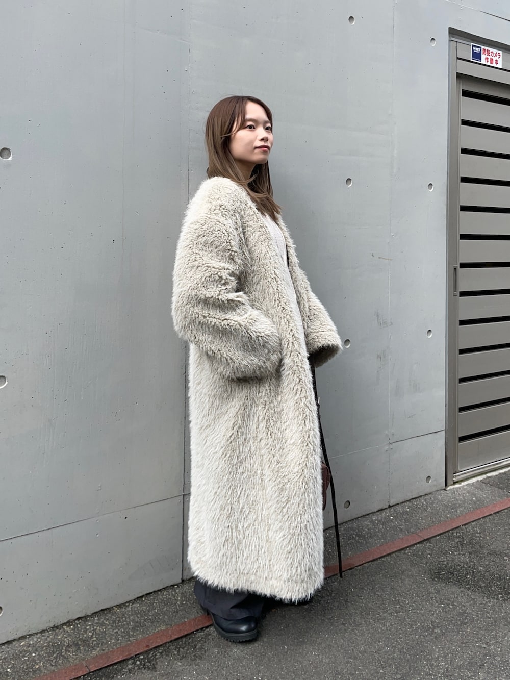 羽織は上質なボア素材でモフモフ感が可愛いです✨ロングコートなのに、とっても軽く存在感のある一枚になっております!低身長でも使える丈感のロングコートなので、オススメです✨