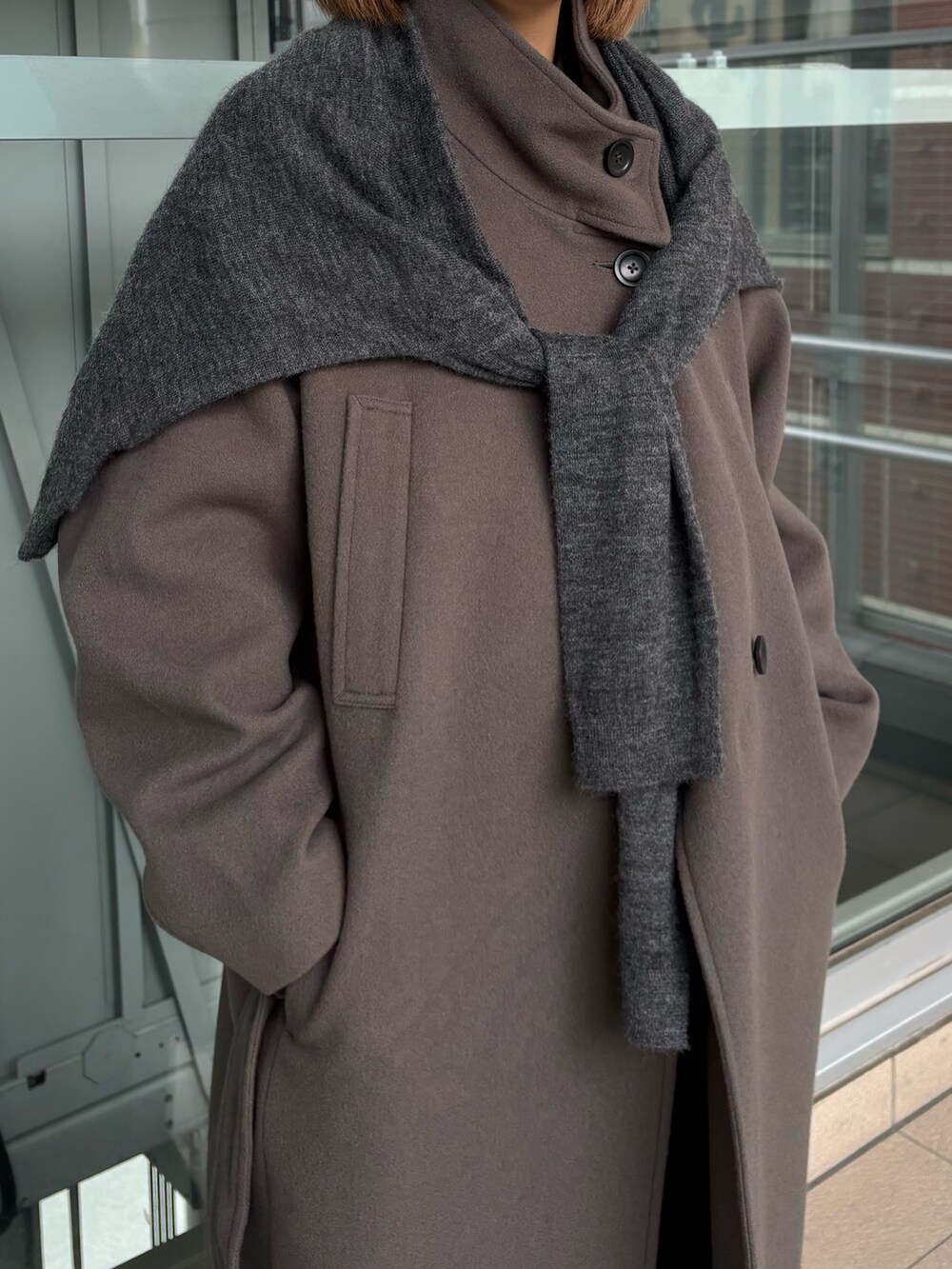 肩にかけているストールも色々な着回しができる上に室内で寒い時パサっと上から巻くだけでも寒さ対策にもなります⛄️