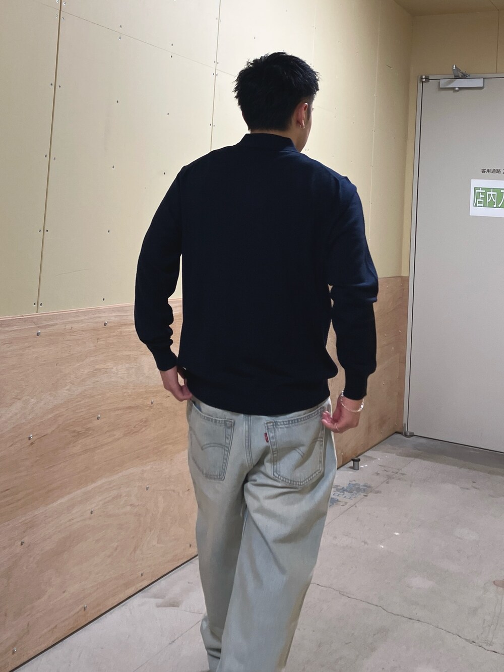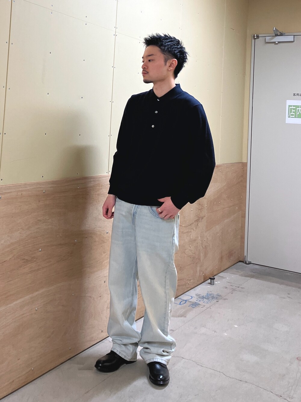 LIFE STYLE TAILORのジャストサイズのニットポロと少しルーズな565でAラインを意識してみました。ニットポロは3色ありますが、やはりネイビーが好きです🦕