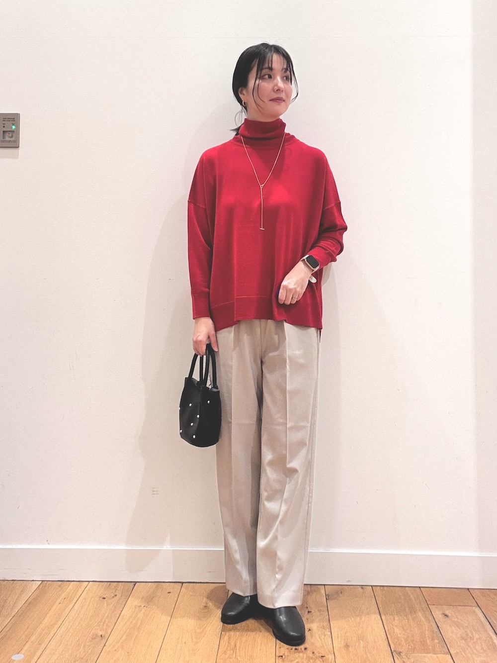 タートルネックのニットはウォッシャブル素材のイージーケア。