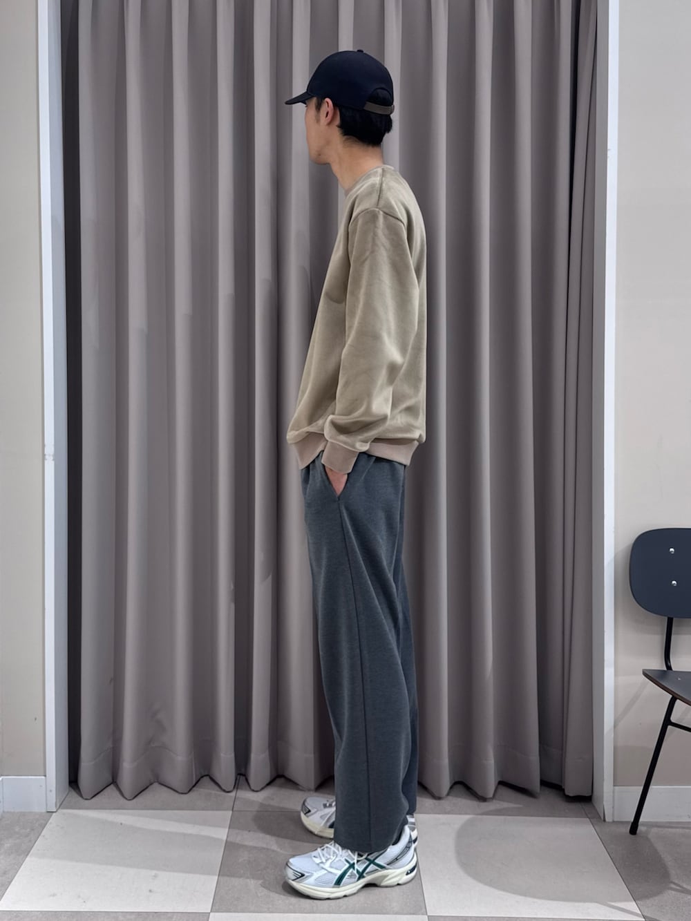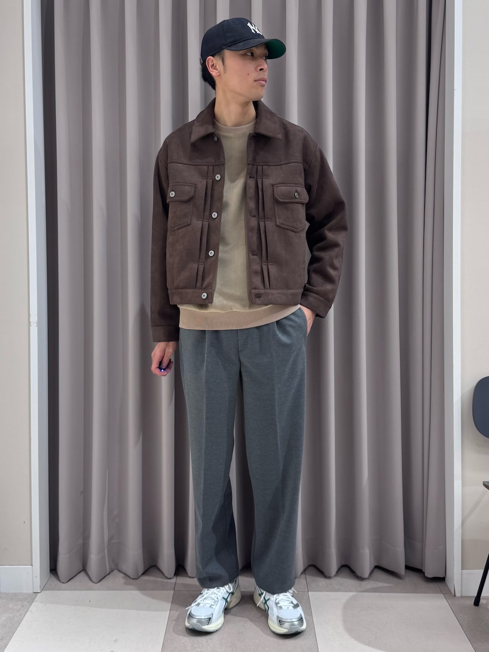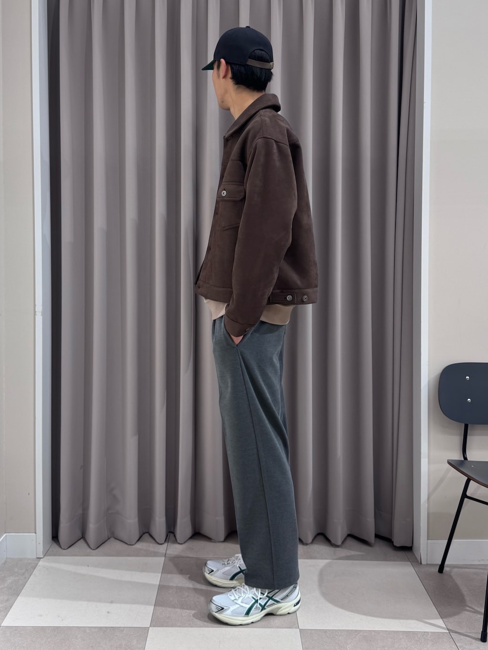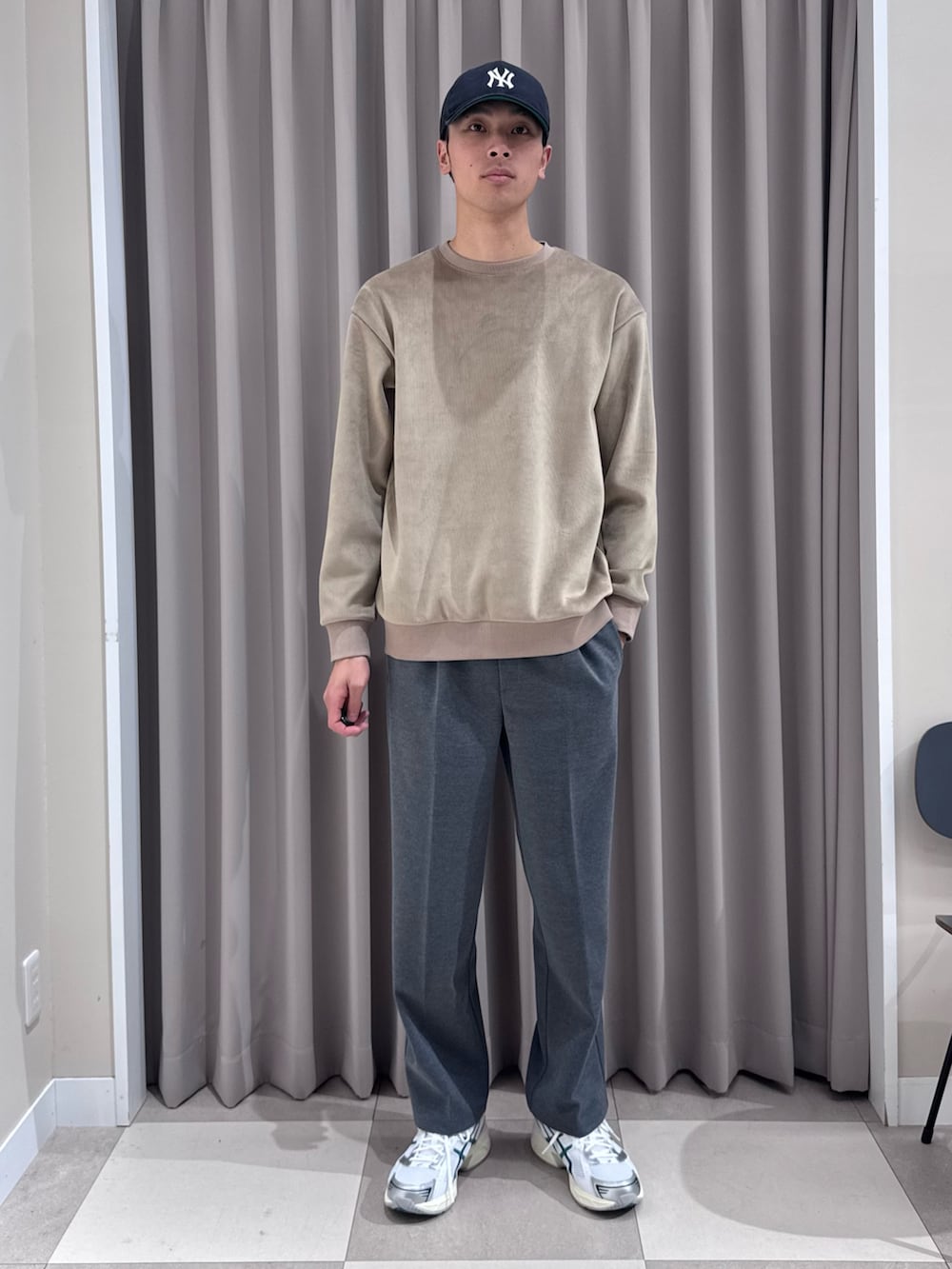 シンプルにスラックス合わせでキレイめカジュアルなスタイリングに。
