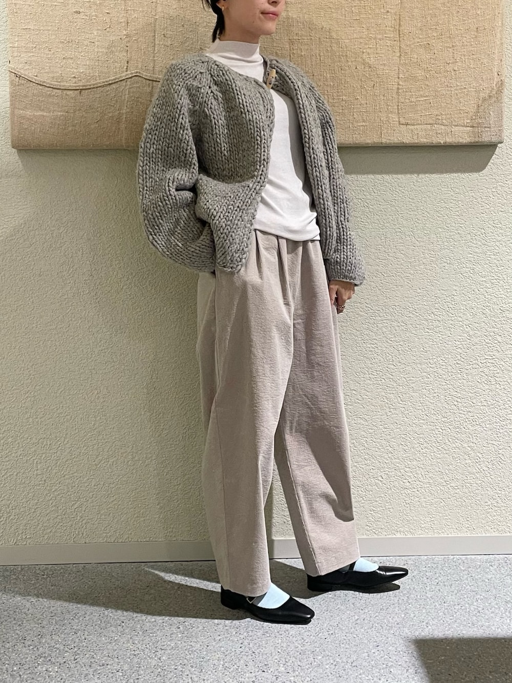 大人気のコーデュロイテーパードパンツ、程よくポワンとしたテーパードシルエットがさすがかぐれですね✨少し珍しいこの柔らかいカラーもとってもいいです🥺♡