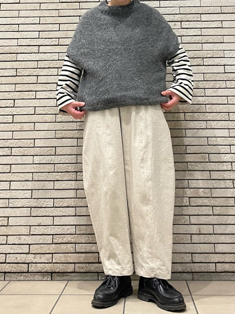 ふくらみのある丸いシルエットがシンプルなスタイリングにもこなれ感を。ウエストはゴム仕様になっているため着用しやすいです◎