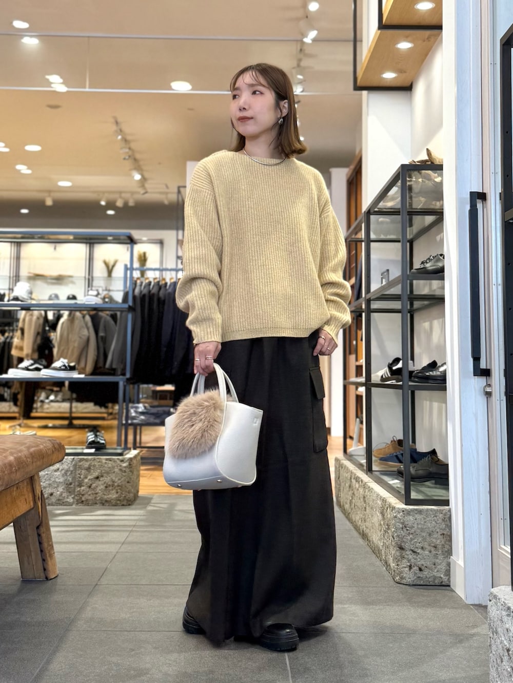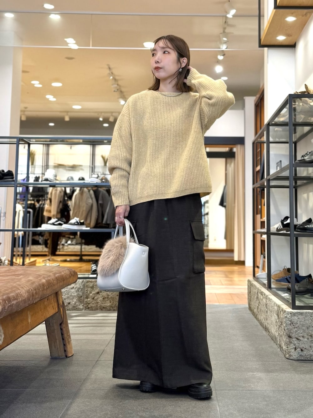 優しいイエローのあったかニットコーデ🧶