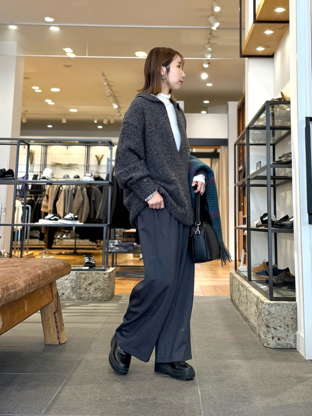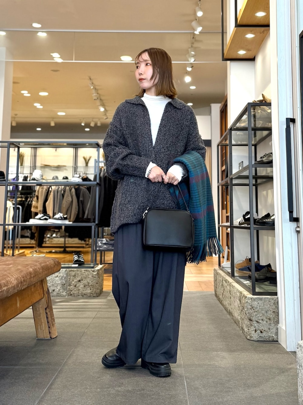 EKALのスキッパーニットはざっくりと首元が開いたゆるいシルエットでとてもかわいいです!タートルネックやカットソーをレイヤードして、お洒落度が上がるアイテムです◎