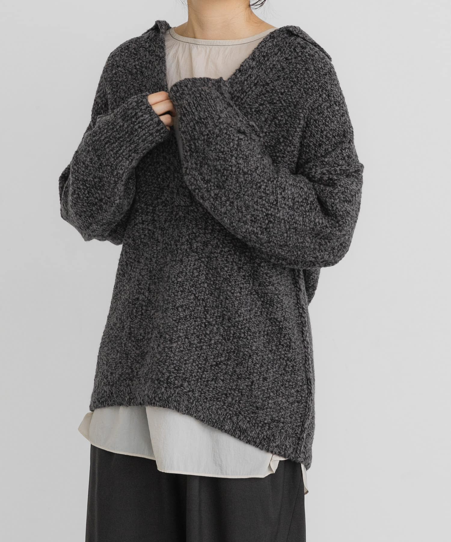 EKAL鹿子編みスキッパー衿ニット- カラー: