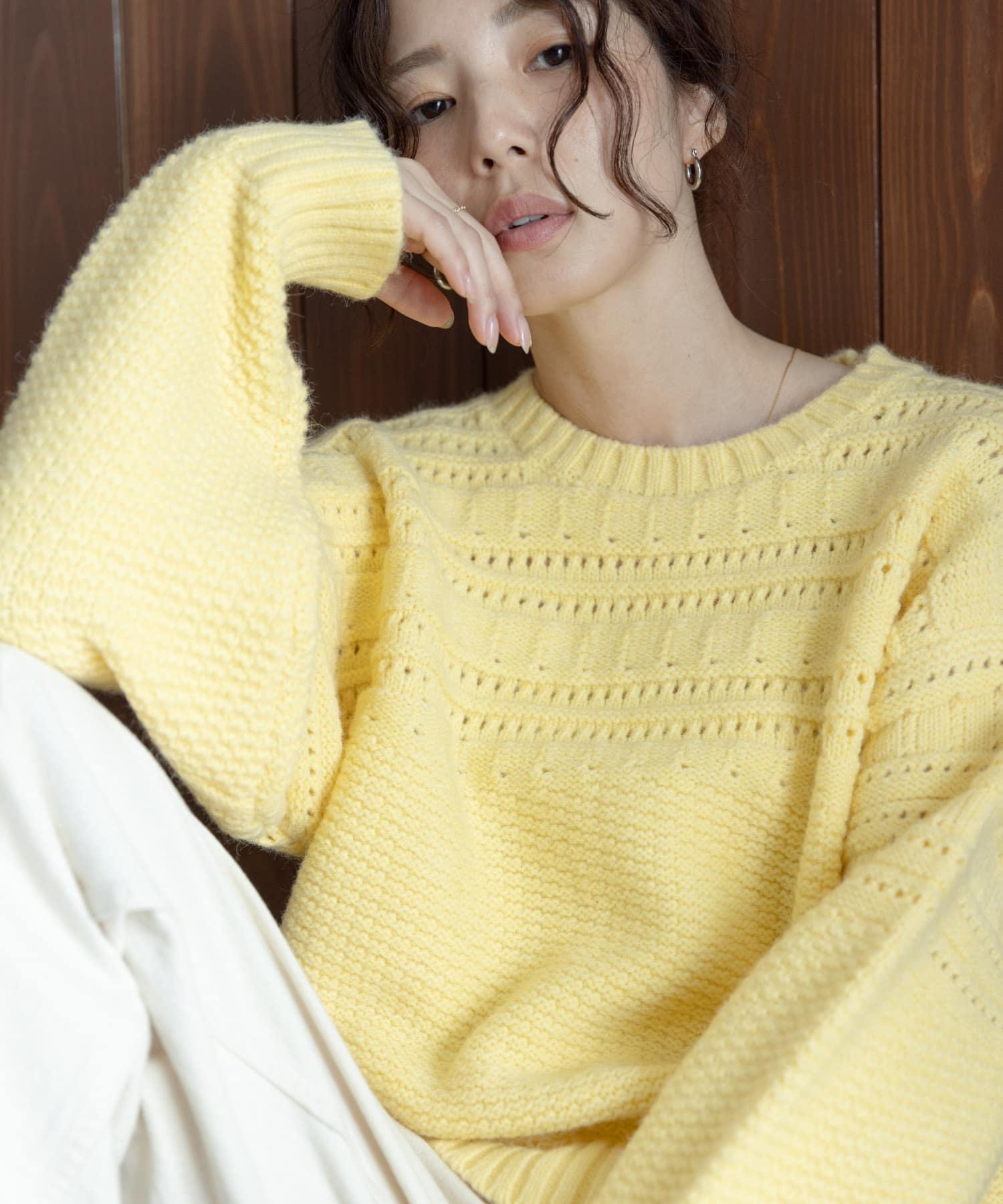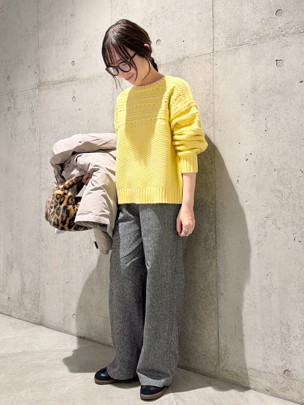 今回は、イエローカラーのニットを差し色にして華やかな雰囲気にしてみました。