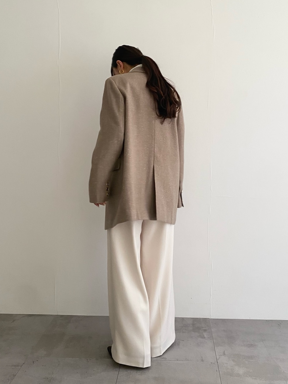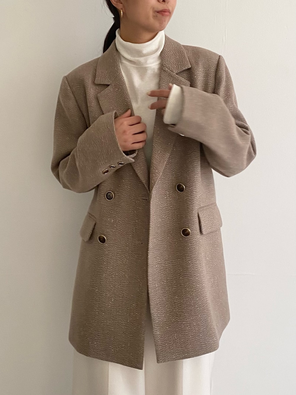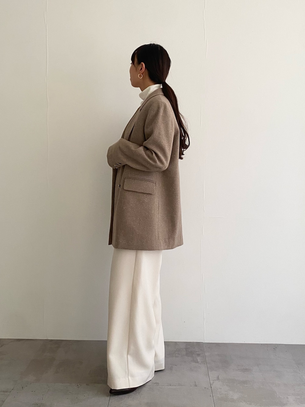 硬い生地ではないのでちゃんと肩のシルエット拾ってくれます!ほどほどにかっちり、普段にもお仕事にもおすすめです!