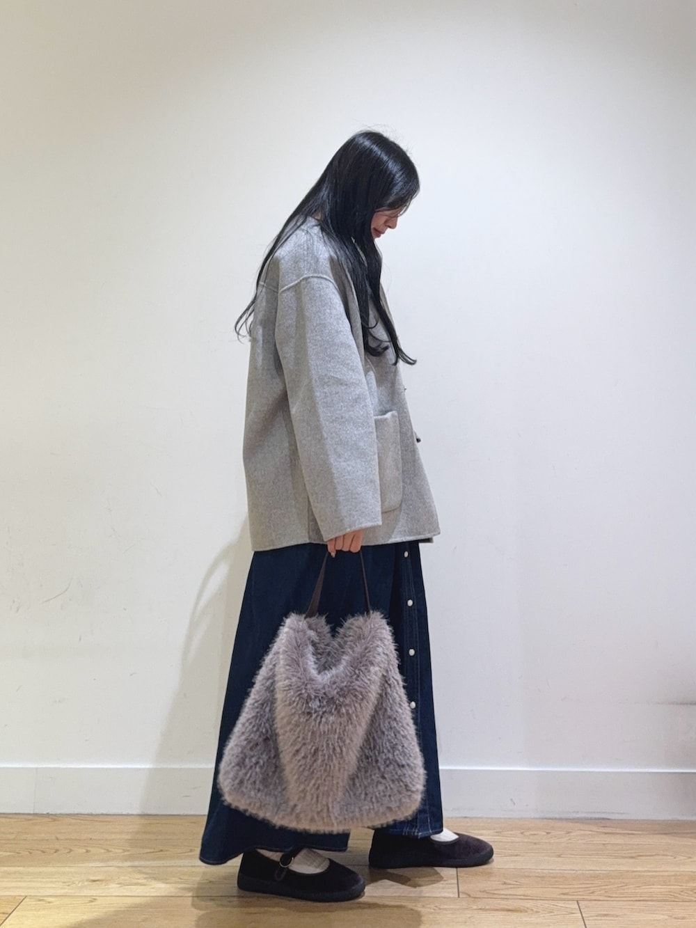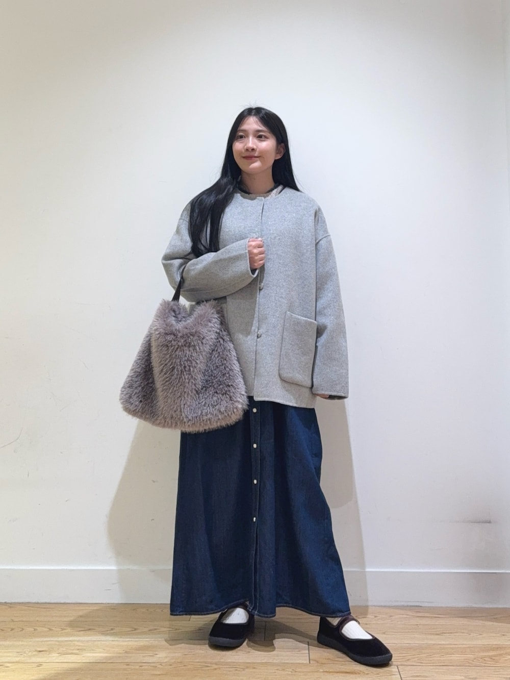 ウールリバーノーカラーコートは、軽くてゆったりめなので中にたくさん着込めて長い間着れるのでおすすめです!