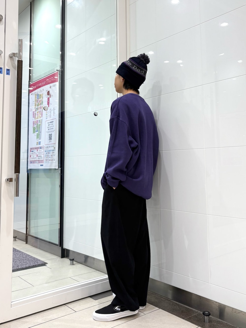 このラフさ、でも決まるWIDE DAD、さすがです…。トップスの袖の溜まり具合や、裾の絞ったシルエットが緩いながらに締まり感がでて1枚でコーデが完成します。