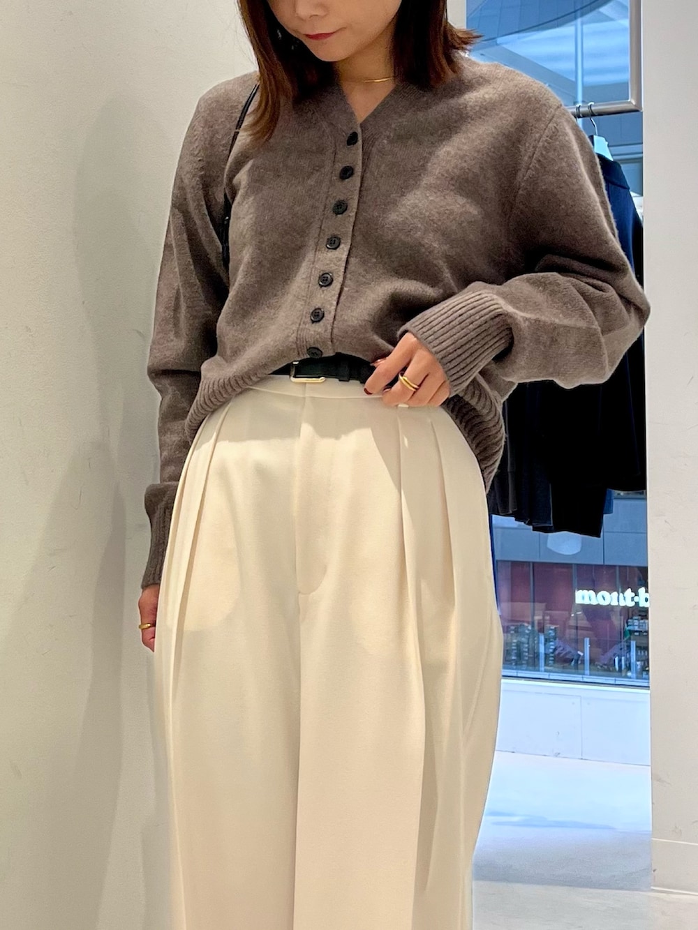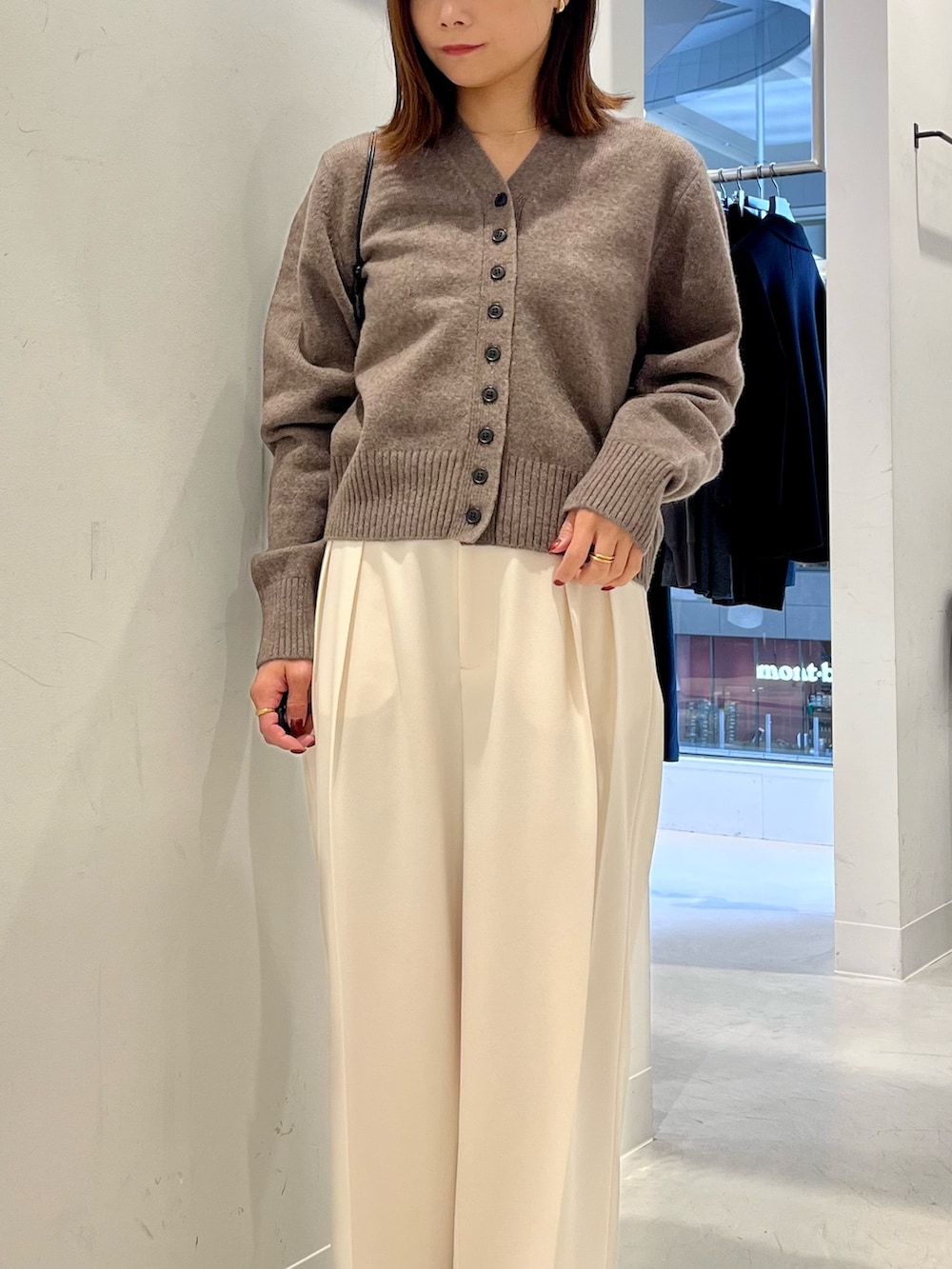 丈感は長すぎず、ボトムを選ばずワイドパンツやスカートとも合わせやすいです!